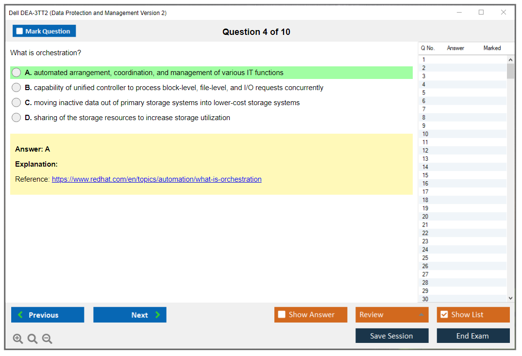The Dell DEA-3TT2 Exam evaluates the proficiency of candidates in understanding and implementing data protection and management solutions. It is aimed at individuals seeking to validate their expertise in this domain.