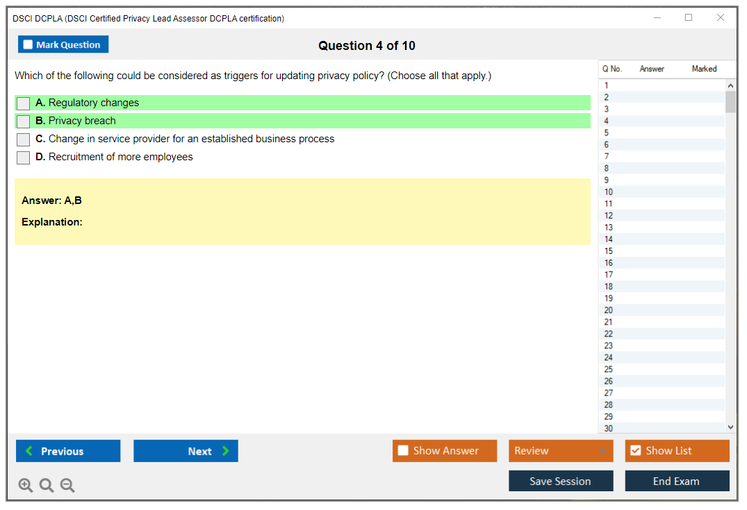 The DSCI Certified Privacy Lead Assessor (DCPLA) Exam is a certification offered by the Data Security Council of India (DSCI) aimed at validating the knowledge and skills of professionals in the field of privacy and data protection.
