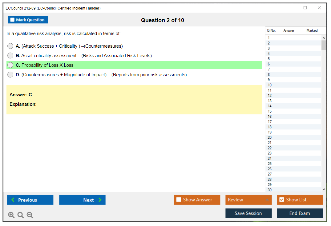 The question format of the ECCouncil 212-89 Exam is multiple-choice.