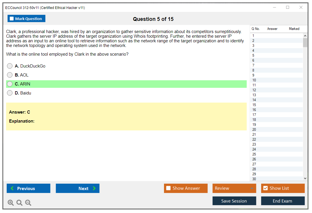 What are the Sample Questions of ECCouncil 312-50v11 Exam?