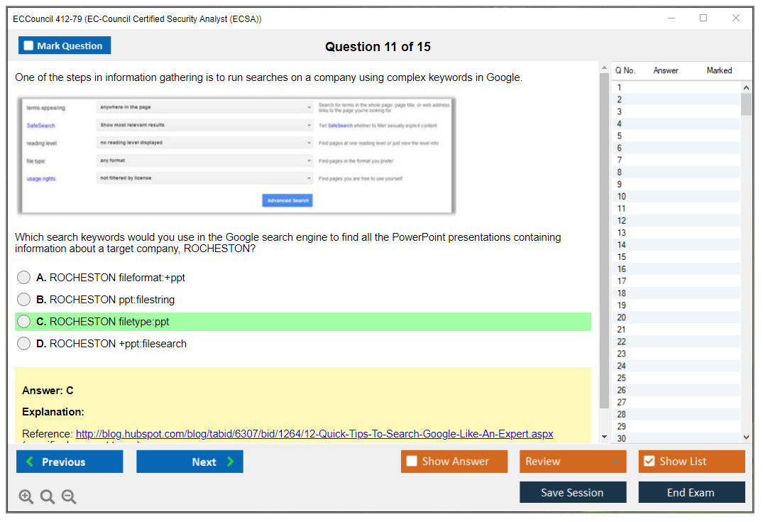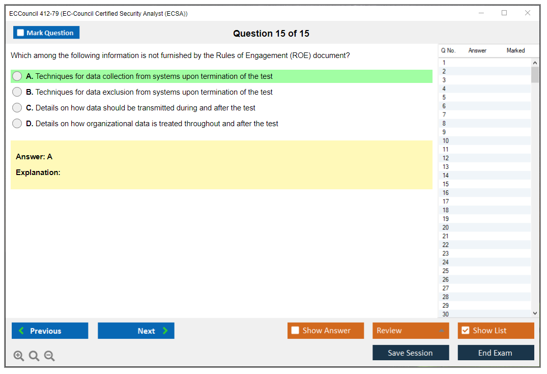 The EC-Council Certified Security Analyst (ECSA) 412-79 exam is designed to validate the skills and knowledge of cybersecurity professionals in advanced penetration testing and security analysis. It is a comprehensive, standards-based approach to validate the skills of penetration testers.