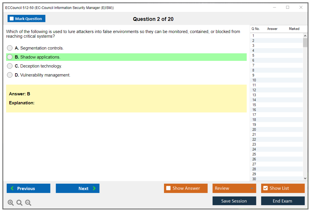 The ECCouncil 512-50, also known as the EC-Council Information Security Manager (E|ISM) exam, is designed to validate the skills and knowledge of professionals in the field of information security management. This certification focuses on the strategic aspects of information security, including governance, risk management, and compliance.