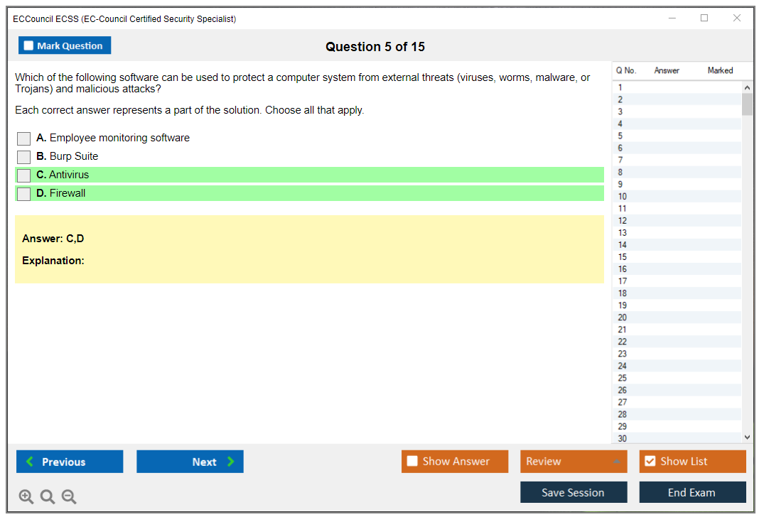 The ECCouncil ECSS Exam is part of the foundational track in ECCouncil's certification roadmap, which can lead to more advanced certifications such as CEH (Certified Ethical Hacker) and CHFI (Computer Hacking Forensic Investigator).