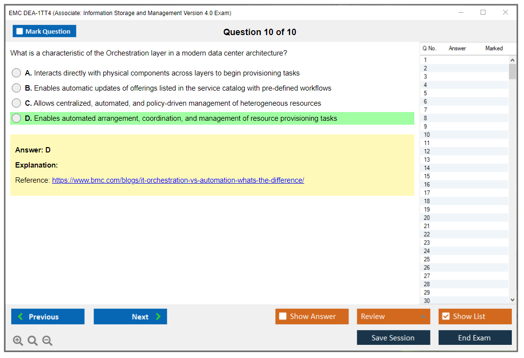 Note: EMC DEA-1TT4 (Associate: Information Storage and Management Version 4.0 Exam) will not receive any new updates.