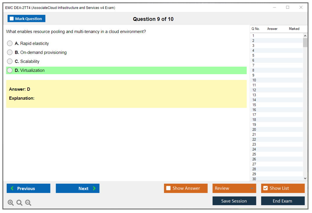 The EMC DEA-2TT4 (Associate - Cloud Infrastructure and Services v4 Exam) is designed to validate the knowledge and skills of individuals in cloud infrastructure and services. It covers a range of topics including cloud computing concepts, technologies, and best practices.