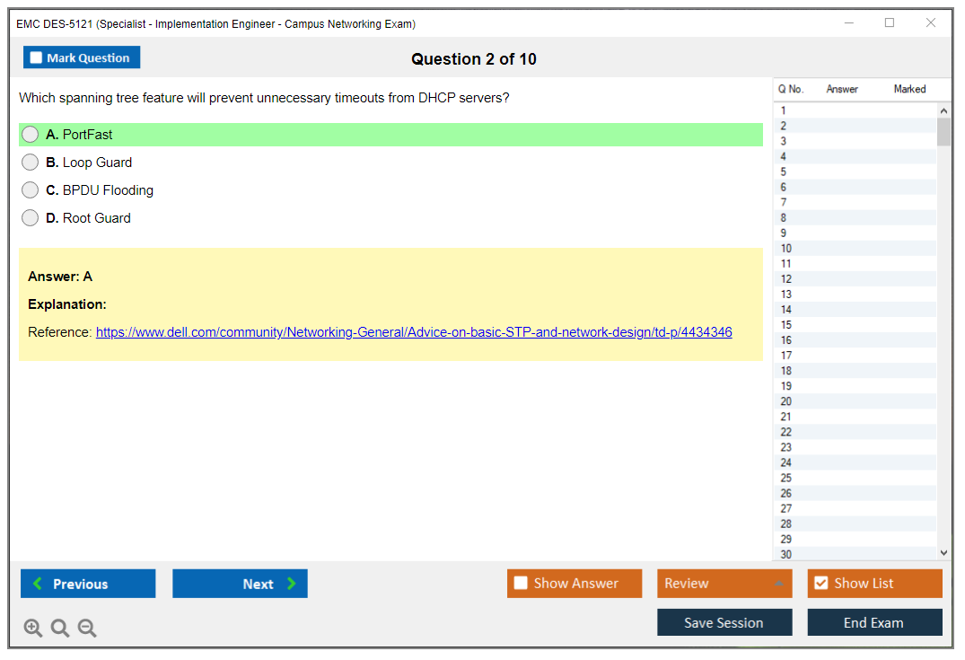 The EMC DES-5121 (Specialist - Implementation Engineer - Campus Networking Exam) is designed to validate the knowledge and skills required to implement and manage campus networking solutions using Dell EMC products and technologies.