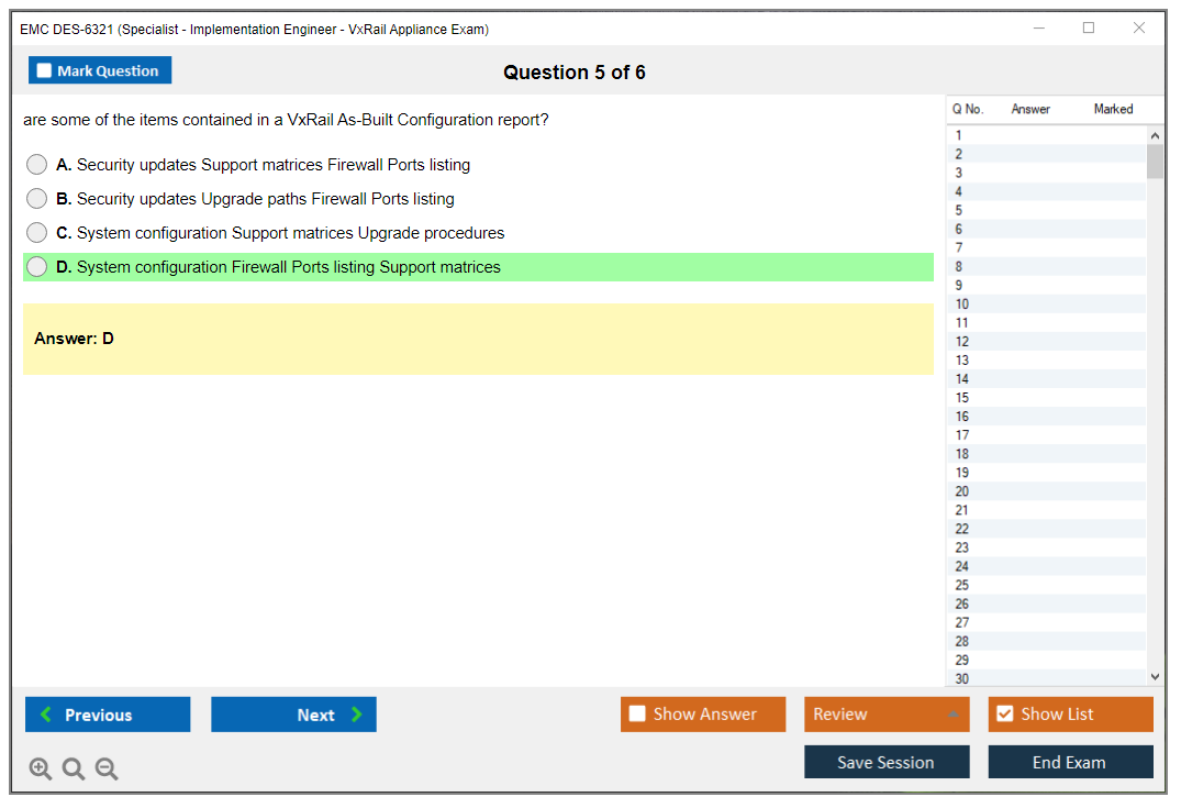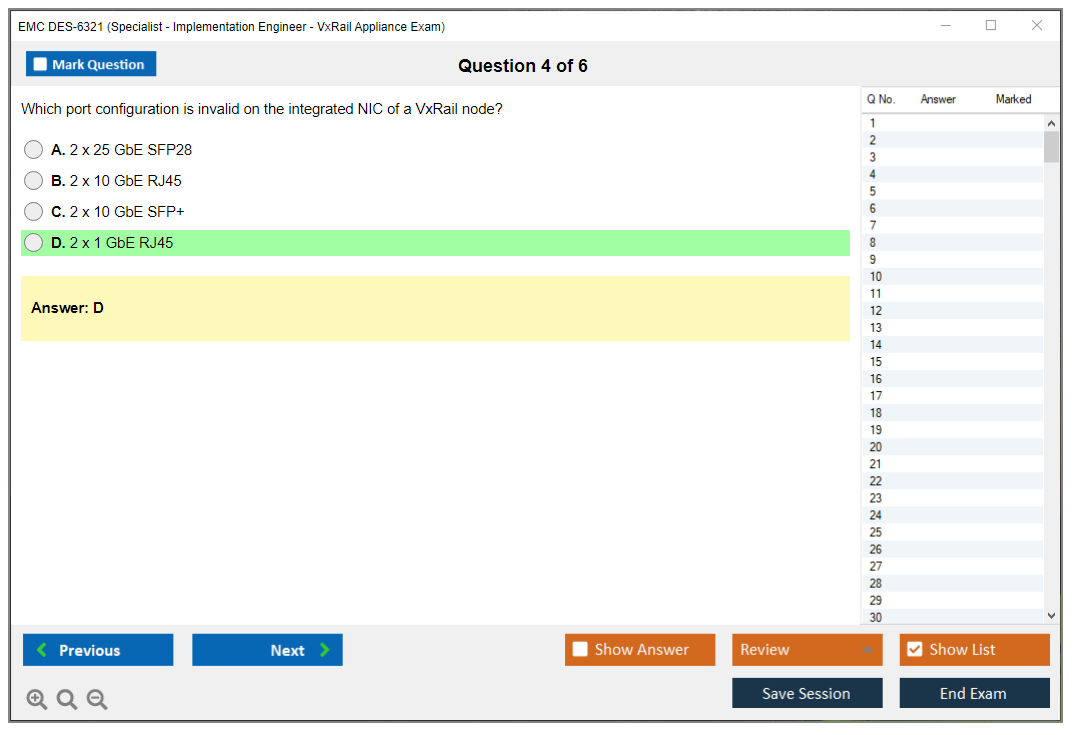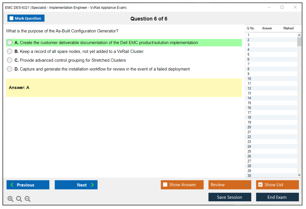 The EMC DES-6321 (Specialist - Implementation Engineer - VxRail Appliance Exam) is designed to validate the skills and knowledge required to implement and manage VxRail appliances within a data center environment.