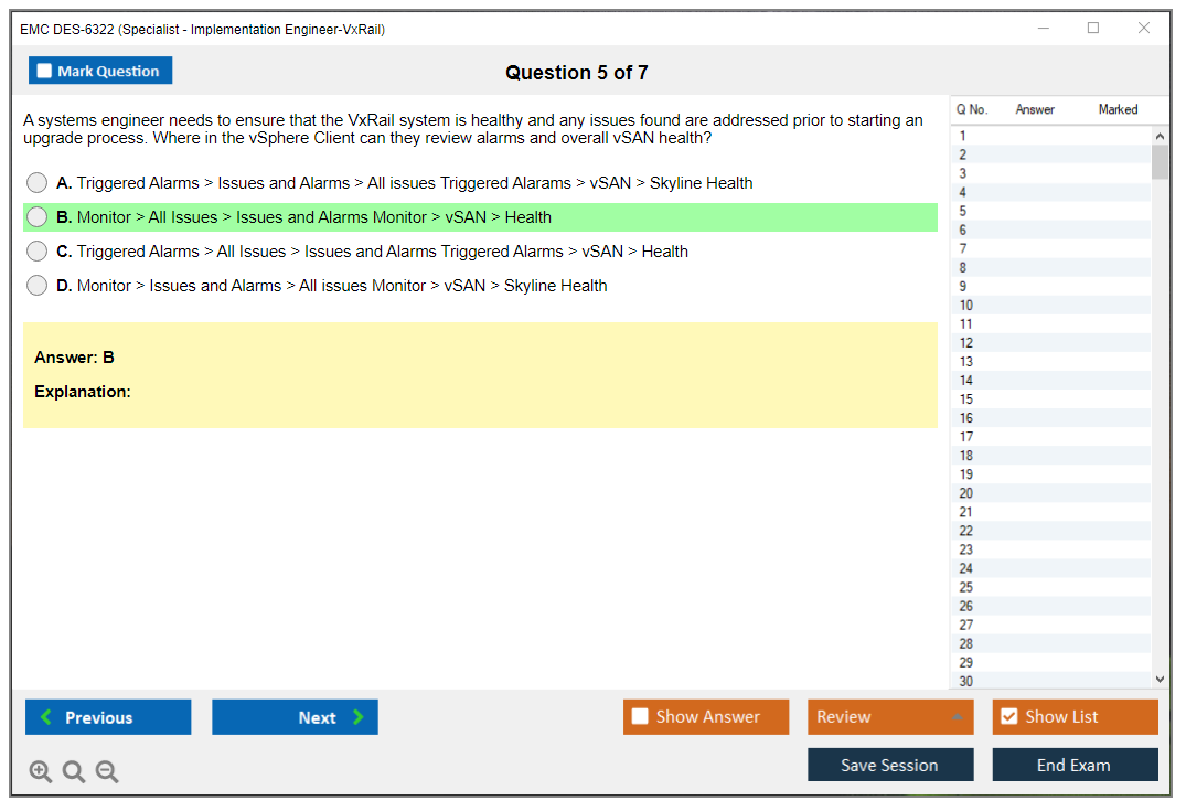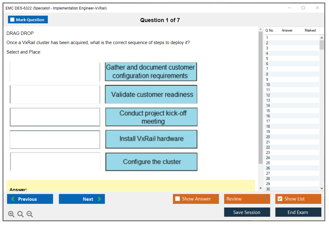 The EMC DES-6322 exam, also known as the Specialist - Implementation Engineer, VxRail Exam, is designed to validate the knowledge and skills required to implement and manage VxRail systems.