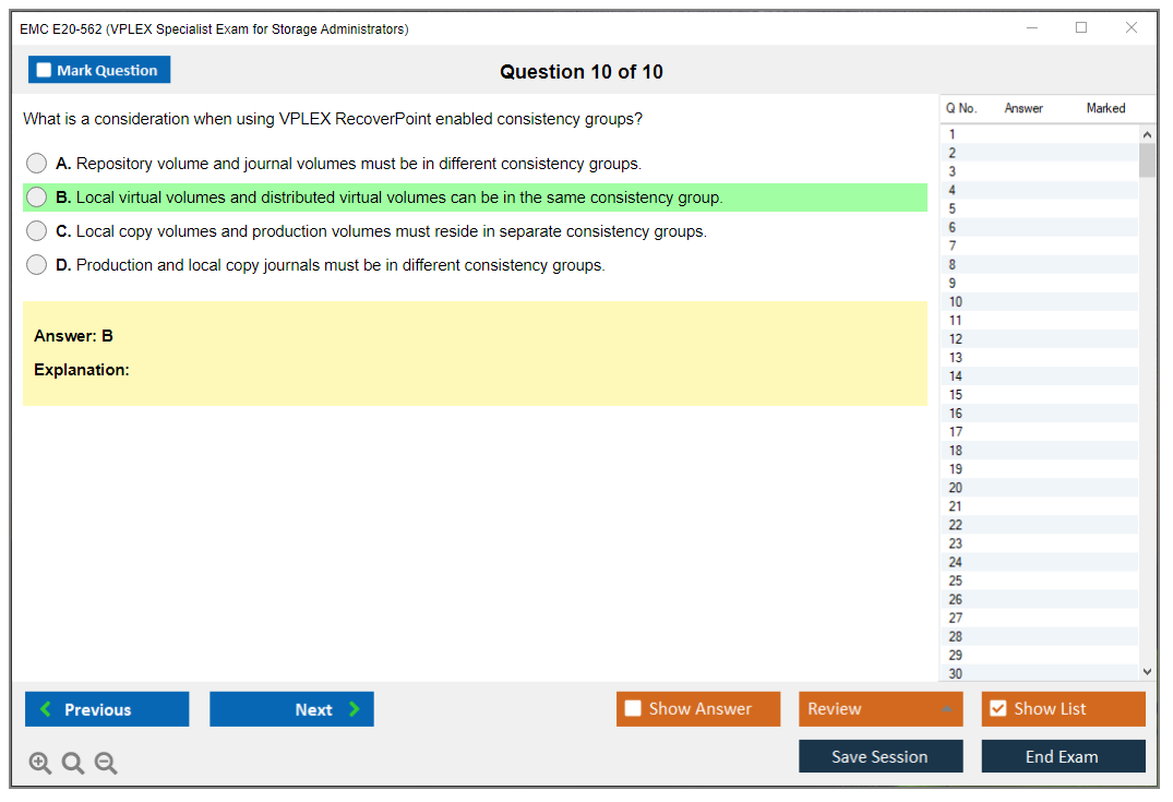 The EMC E20-562 (VPLEX Specialist Exam for Storage Administrators) is designed to validate the skills and knowledge required to manage and operate EMC VPLEX systems. This certification demonstrates the ability to deploy, configure, and manage VPLEX environments, ensuring high availability and data mobility across multiple sites.