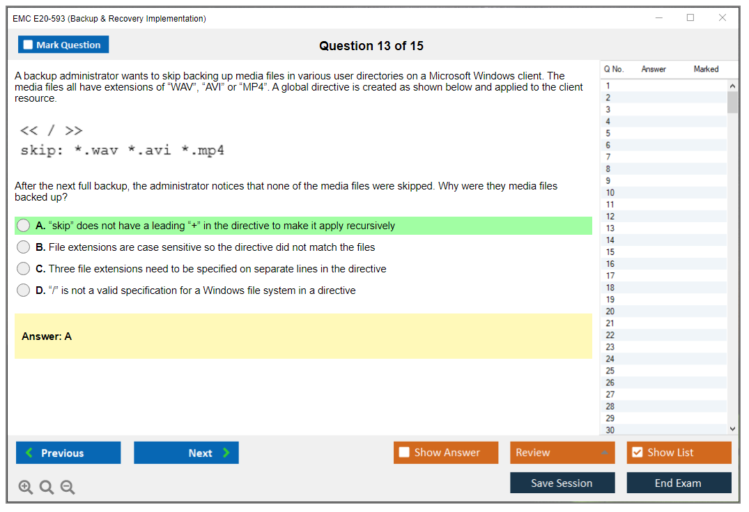 The EMC E20-593 (Backup & Recovery Implementation) Exam is designed to validate the knowledge and skills necessary to implement, configure, and manage EMC backup and recovery solutions.