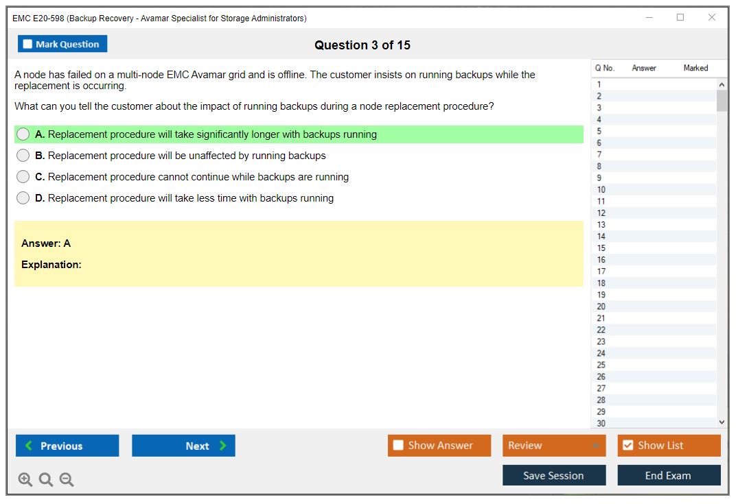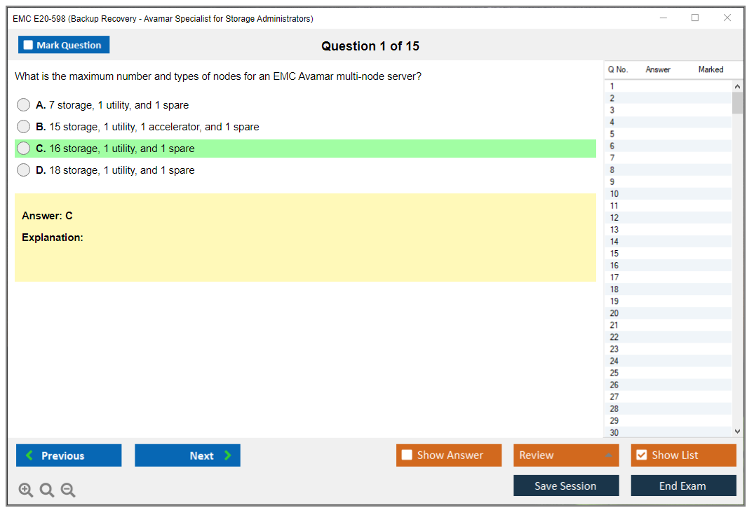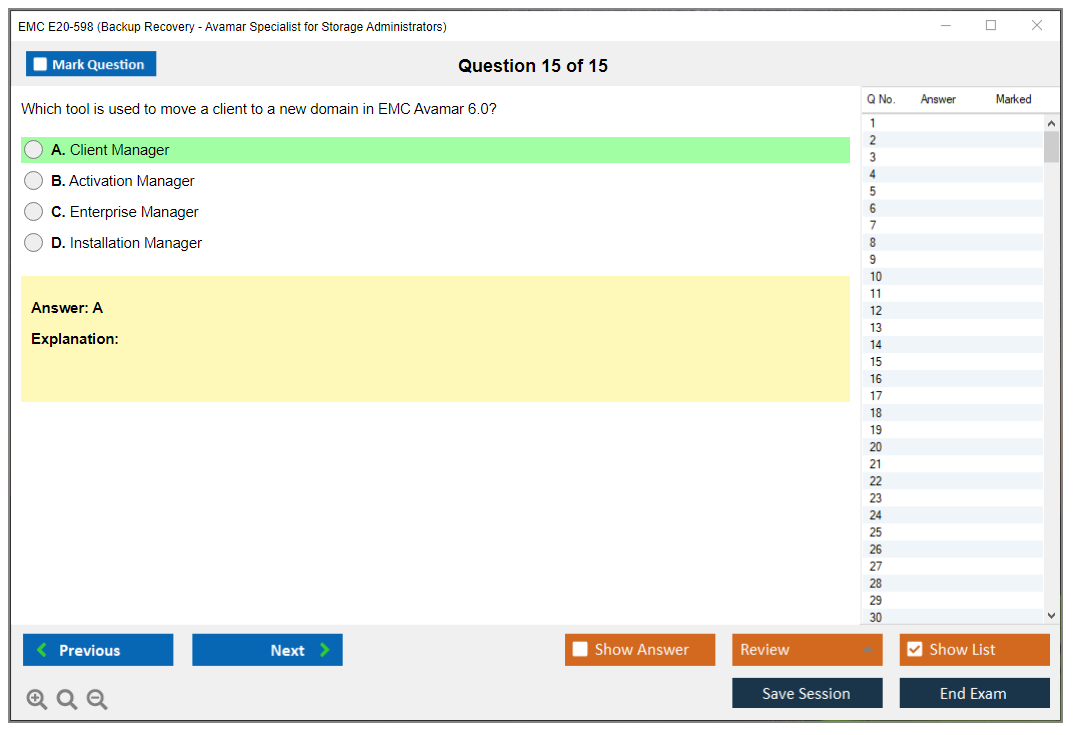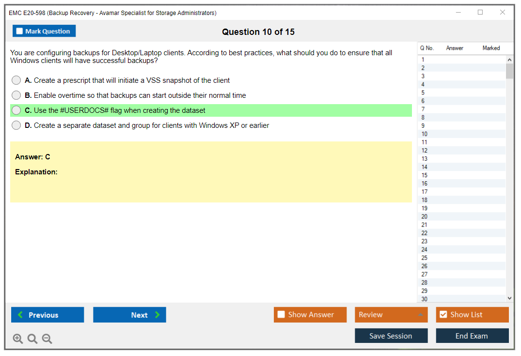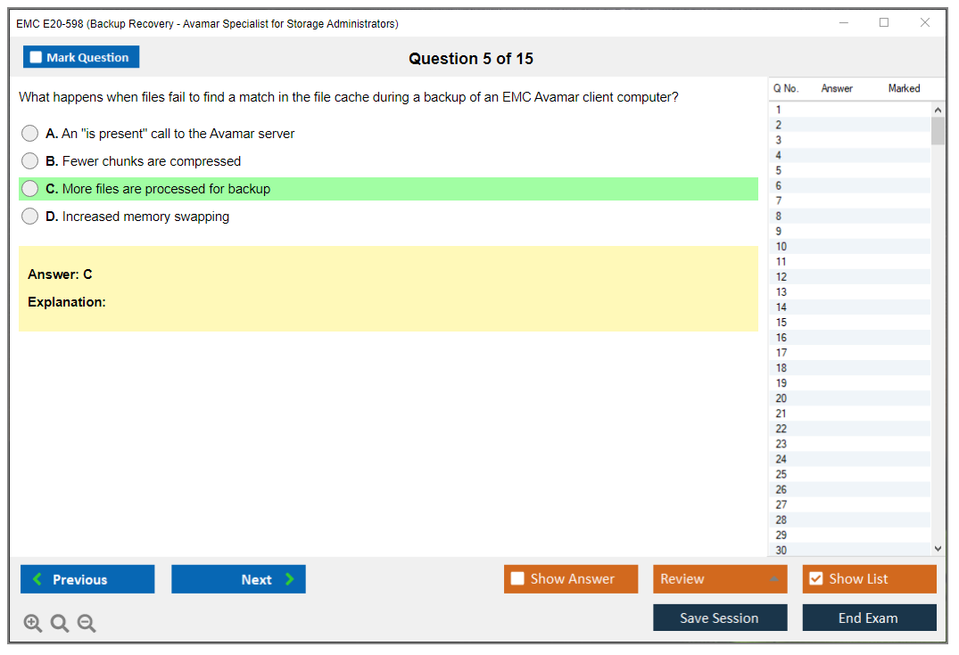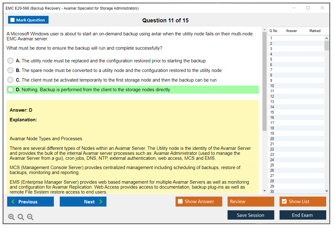 The EMC E20-598 (Backup Recovery - Avamar Specialist Exam for Storage Administrators) is designed to validate the knowledge and skills required to implement, configure, and manage EMC Avamar backup and recovery solutions. This exam is intended for storage administrators who are responsible for the design, implementation, and maintenance of Avamar systems.