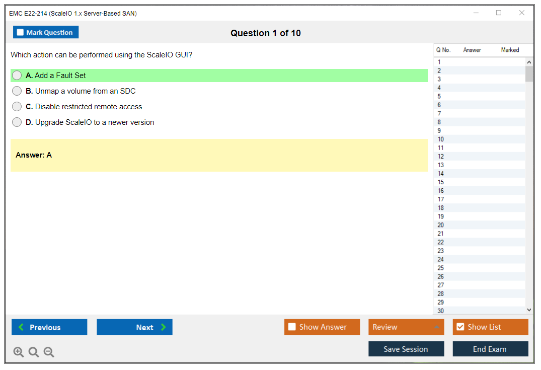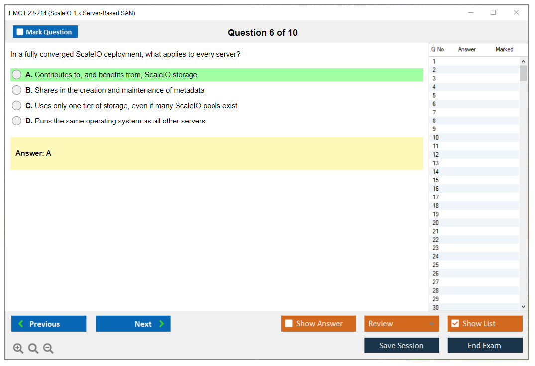 The EMC E22-214 (ScaleIO 1.x Server-Based SAN) Exam is designed to test the knowledge and skills necessary to install, configure, and manage EMC ScaleIO solutions. It covers various aspects of server-based SAN technologies and the specific functionalities of EMC ScaleIO.