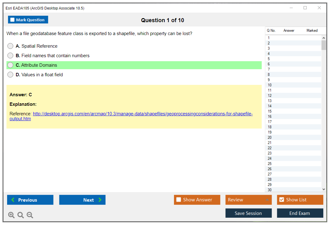 Sample questions for the Esri EADA105 Exam can be found on the official Esri certification page or through various online study resources and practice exams.