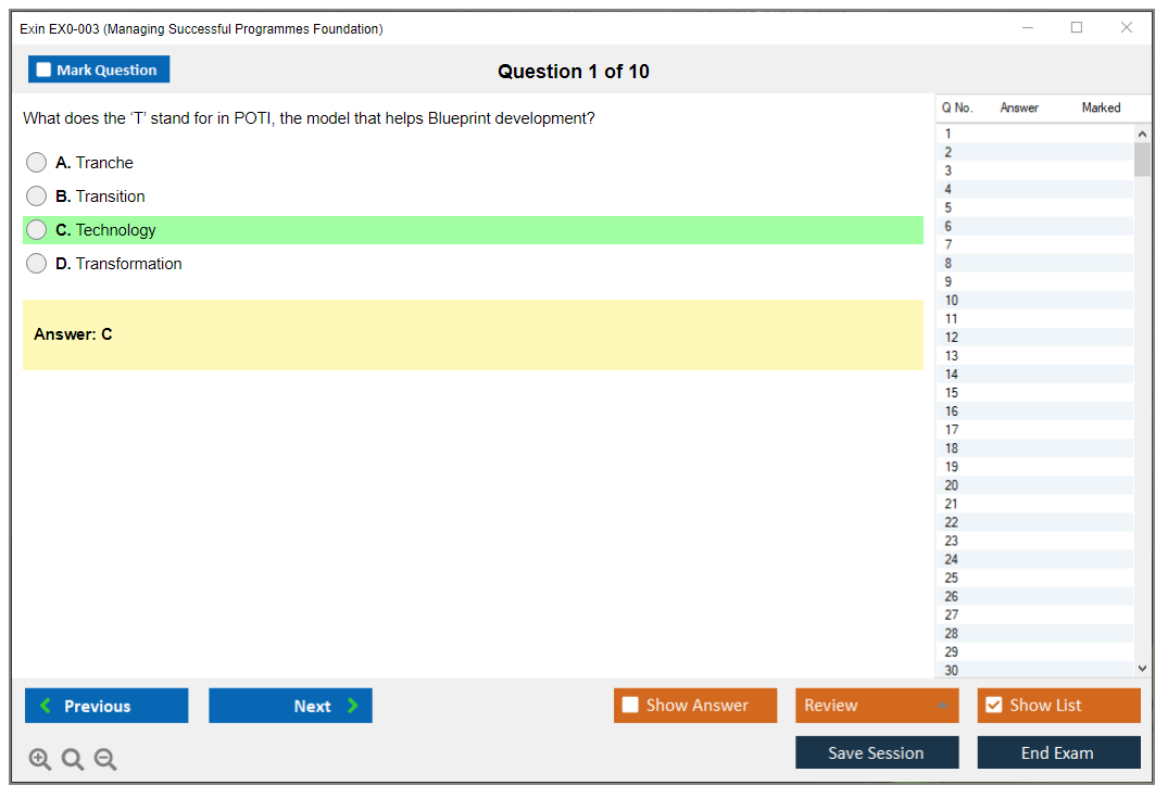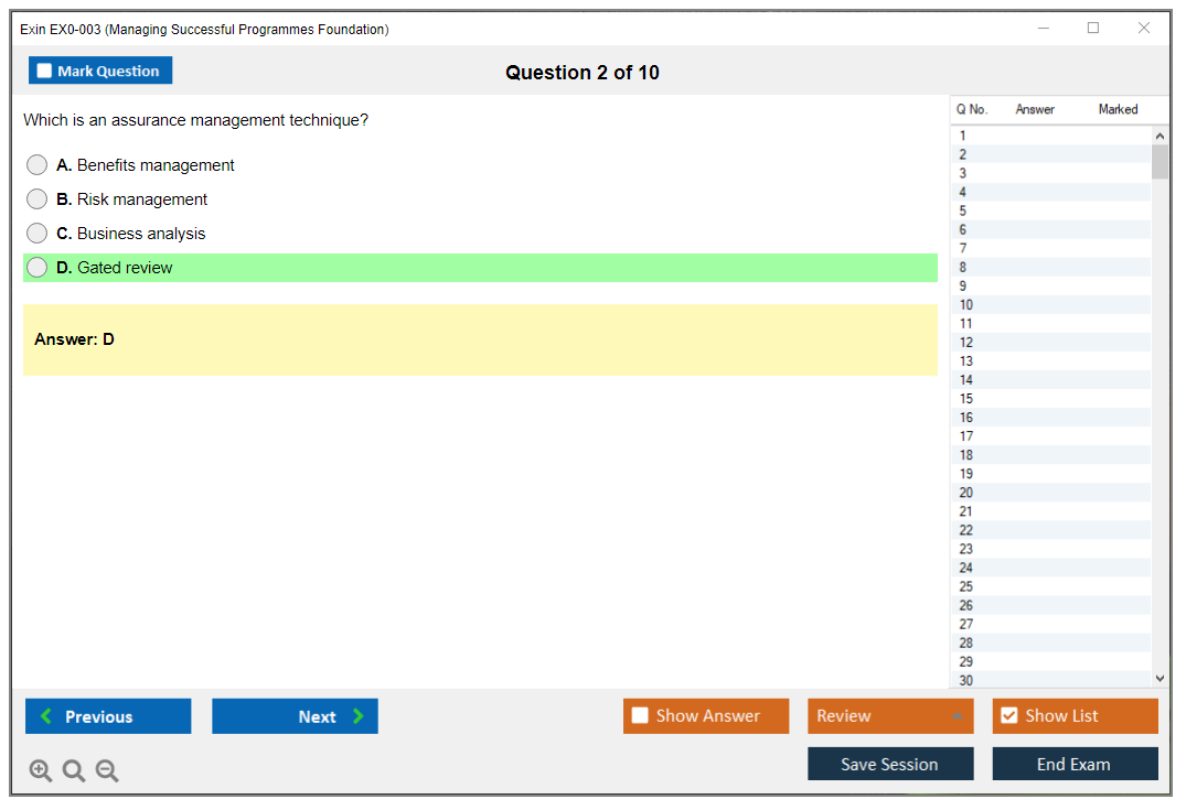 The Exin EX0-003 (Managing Successful Programmes Foundation) Exam is designed to assess a candidate's knowledge and understanding of the Managing Successful Programmes (MSP) framework, which is used for managing complex programs and delivering organizational change.