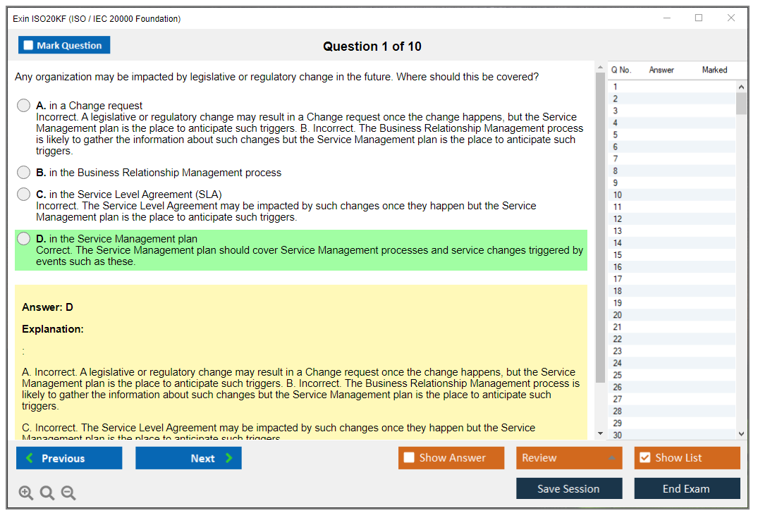 The Exin ISO20KF exam is part of the broader Exin IT Service Management certification track. After achieving the foundation level, candidates can pursue advanced certifications such as ISO/IEC 20000 Practitioner and ISO/IEC 20000 Auditor.