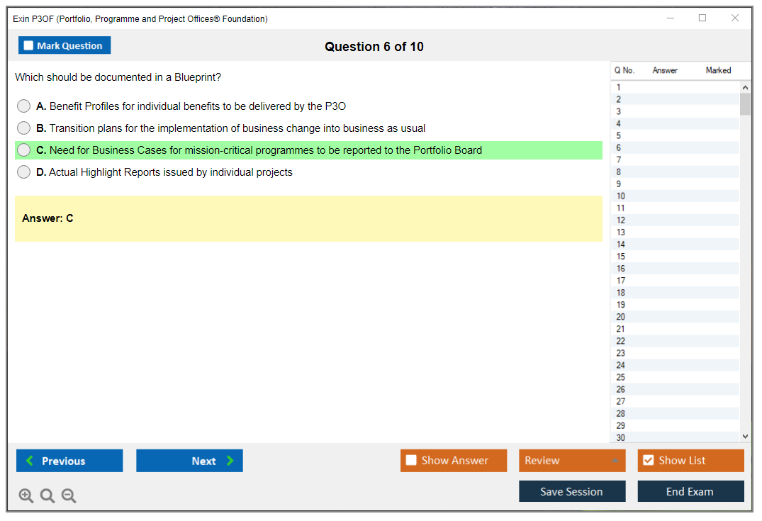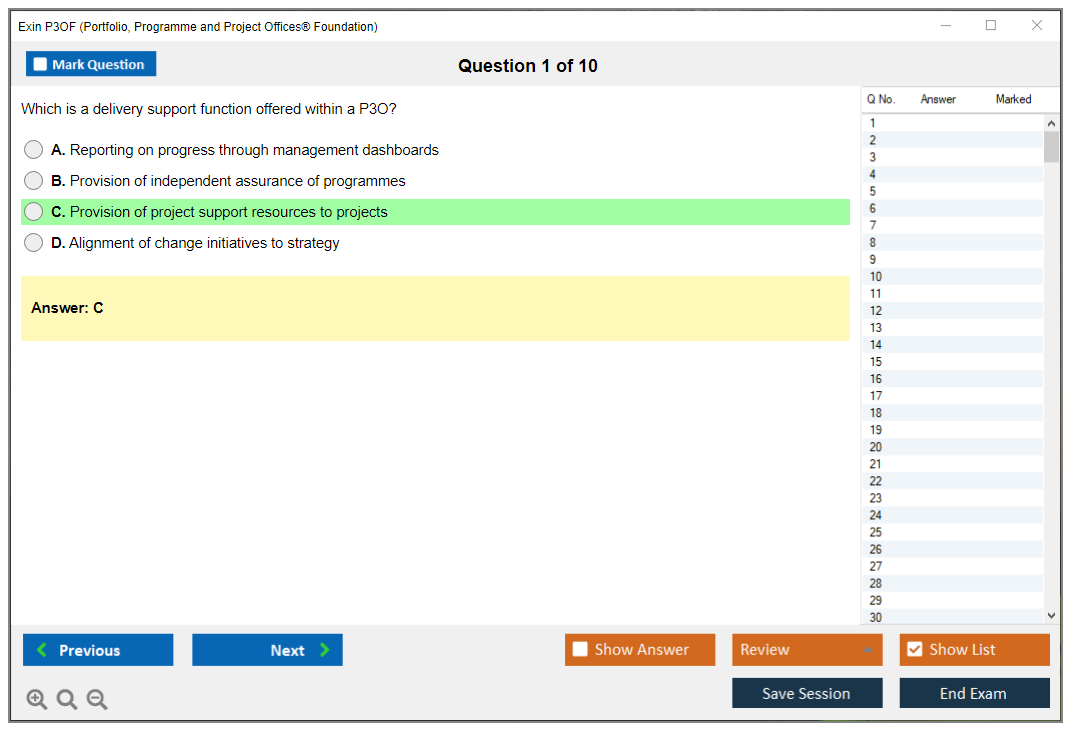 The Exin P3OF (Portfolio, Programme and Project Offices® Foundation) exam is designed to test the knowledge and understanding of the principles and practices of Portfolio, Programme, and Project Offices. It helps professionals understand how to support delivery mechanisms for change within an organization.