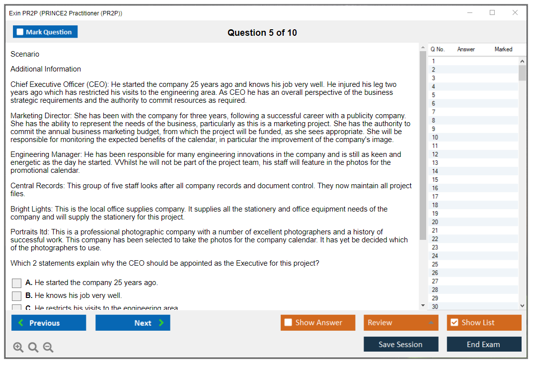 The Exin PR2P Exam is a practitioner-level certification exam that focuses on validating the candidate's understanding and ability to apply the PRINCE2 methodology in real-world project management scenarios.