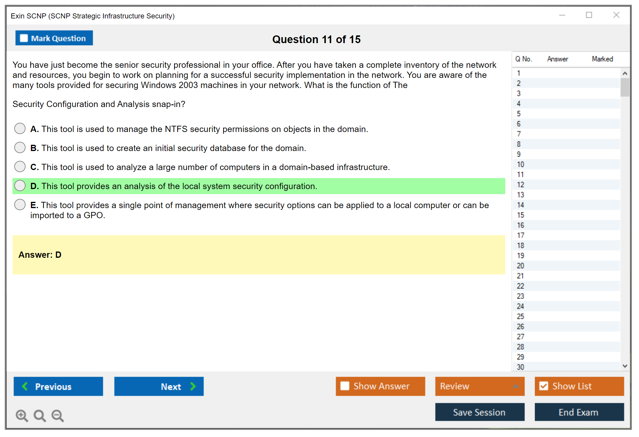 The Exin SCNP (SCNP Strategic Infrastructure Security) exam is designed to validate the knowledge and skills of IT professionals in securing strategic infrastructure. It covers various aspects of infrastructure security, including risk management, network security, and incident response.