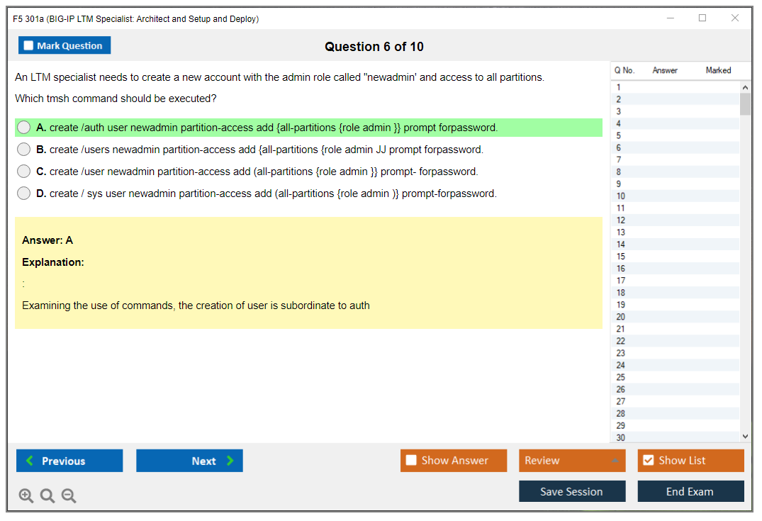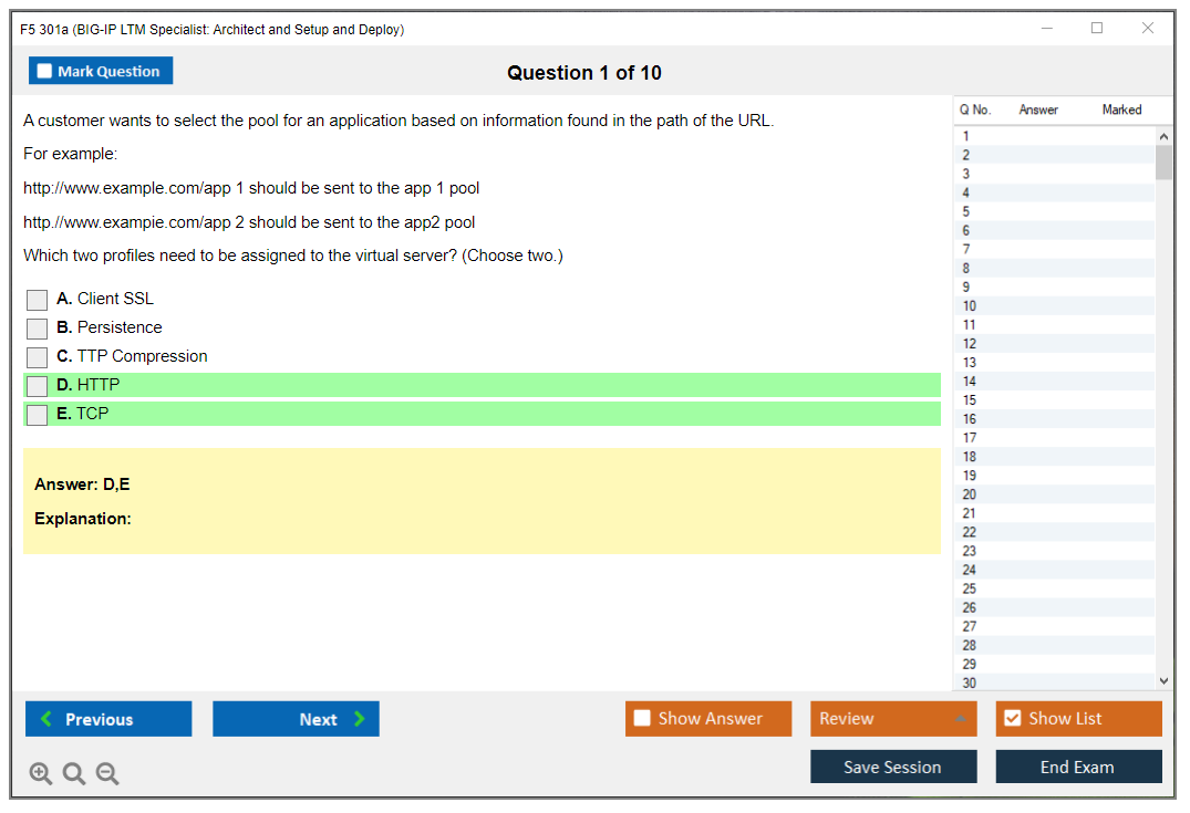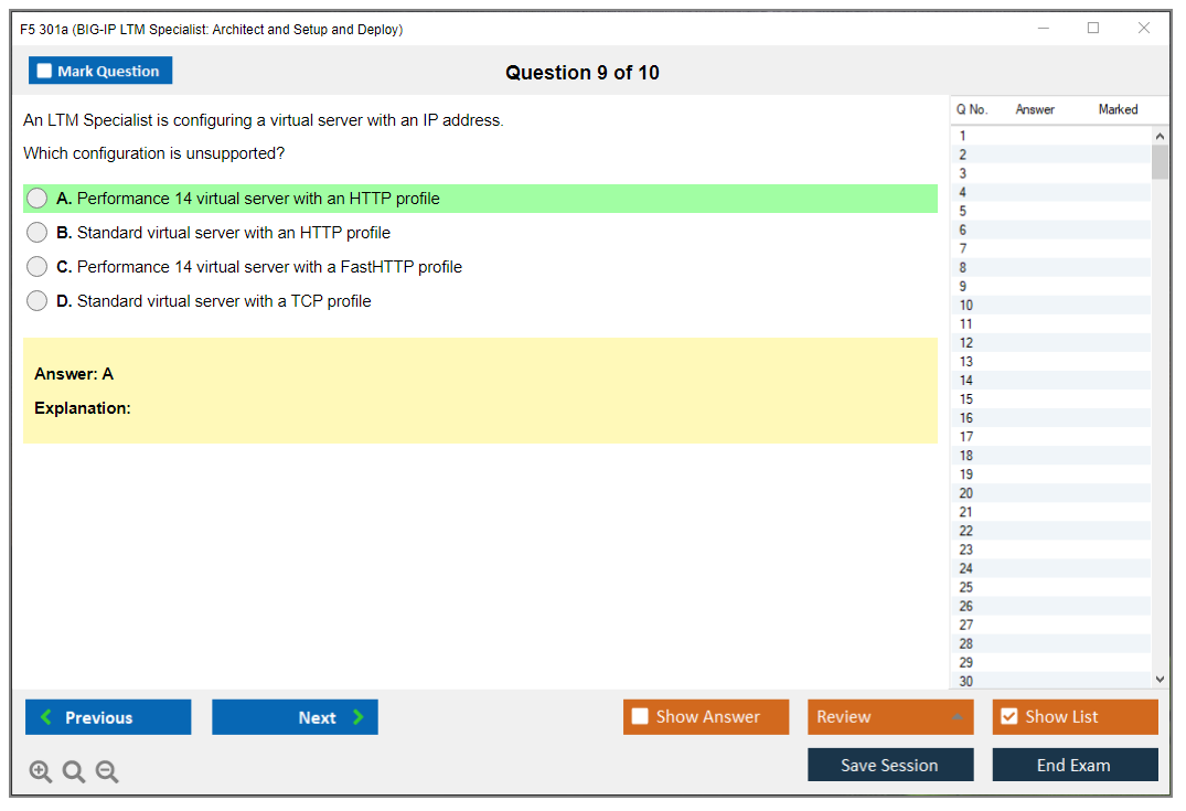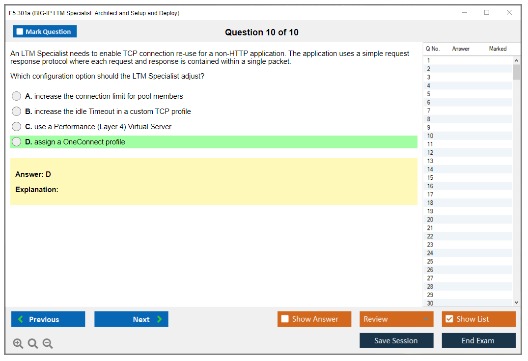 The F5 301a (BIG-IP LTM Specialist: Architect Set-Up & Deploy) exam is a certification test designed to validate the skills and knowledge required to architect, set up, and deploy F5 BIG-IP Local Traffic Manager (LTM) solutions.