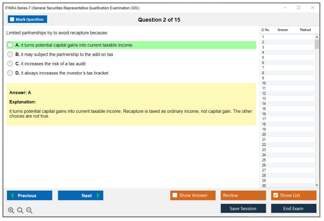 The question format of the FINRA Series-7 Exam is multiple-choice.