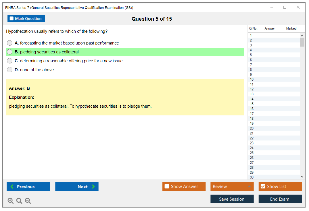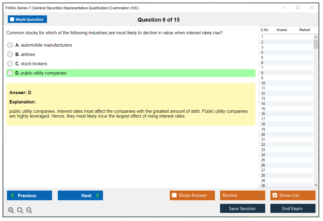 The FINRA Series-7 Exam, also known as the General Securities Representative Qualification Examination (GS), is designed to test the knowledge and skills of individuals seeking to become registered representatives in the securities industry. It covers a broad range of topics related to the sale of securities.