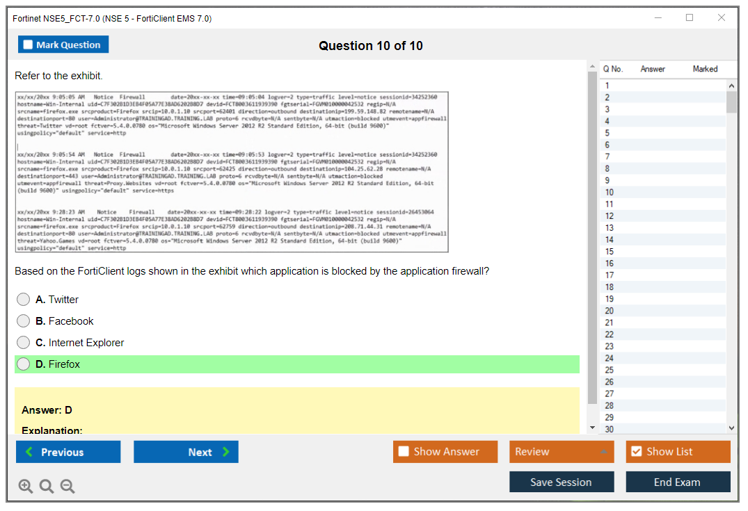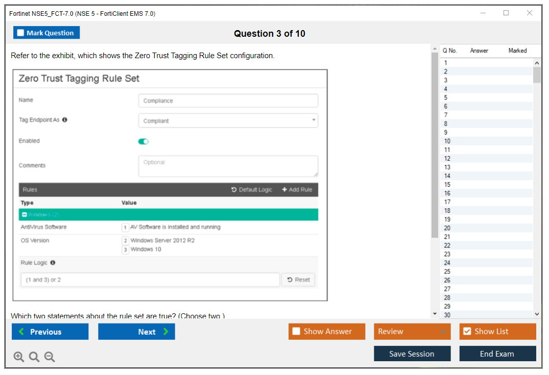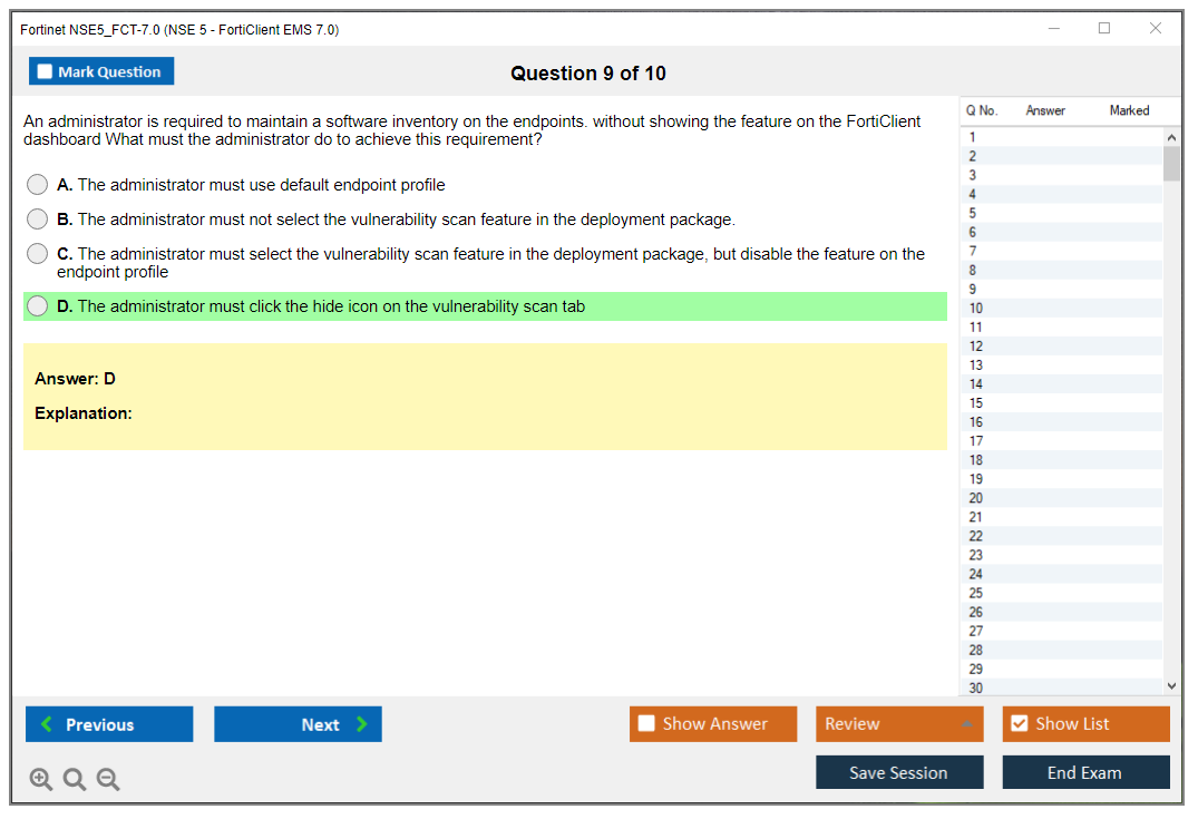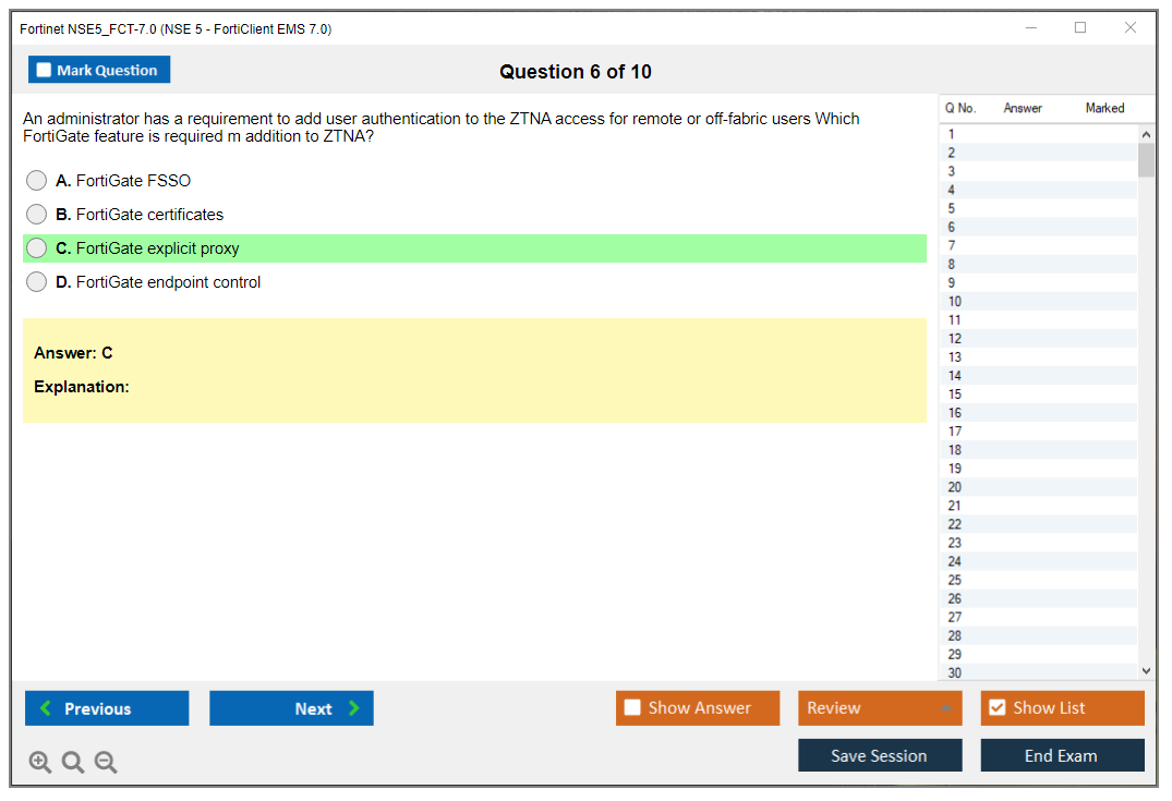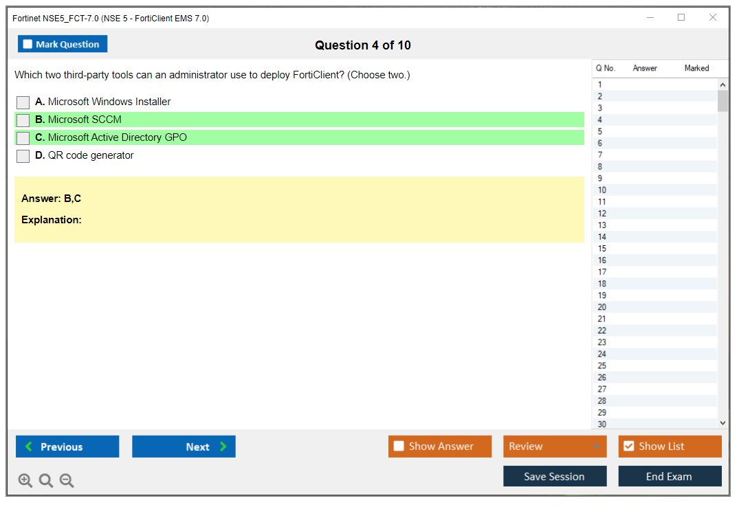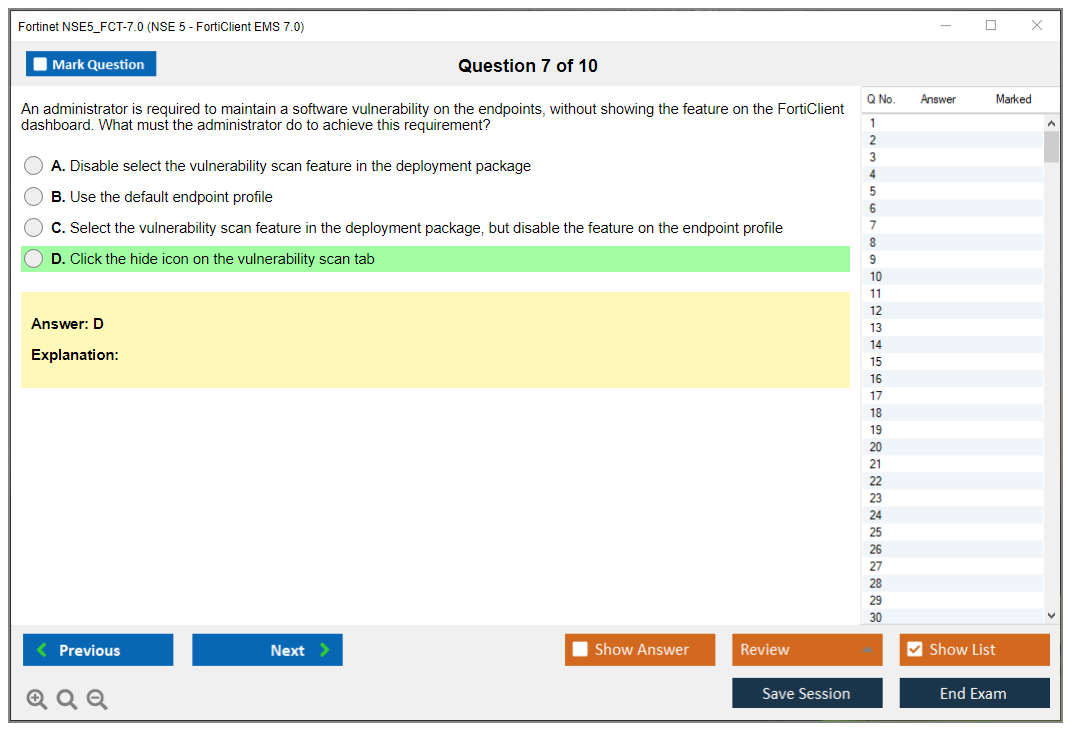 The Fortinet NSE5_FCT-7.0 (NSE5_FCT-7.0 NSE 5 - FortiClient EMS 7.0) exam is part of the NSE 5 certification program, which validates the candidate's ability to deploy, manage, and troubleshoot FortiClient EMS solutions. The exam focuses on skills and knowledge related to FortiClient EMS 7.0.