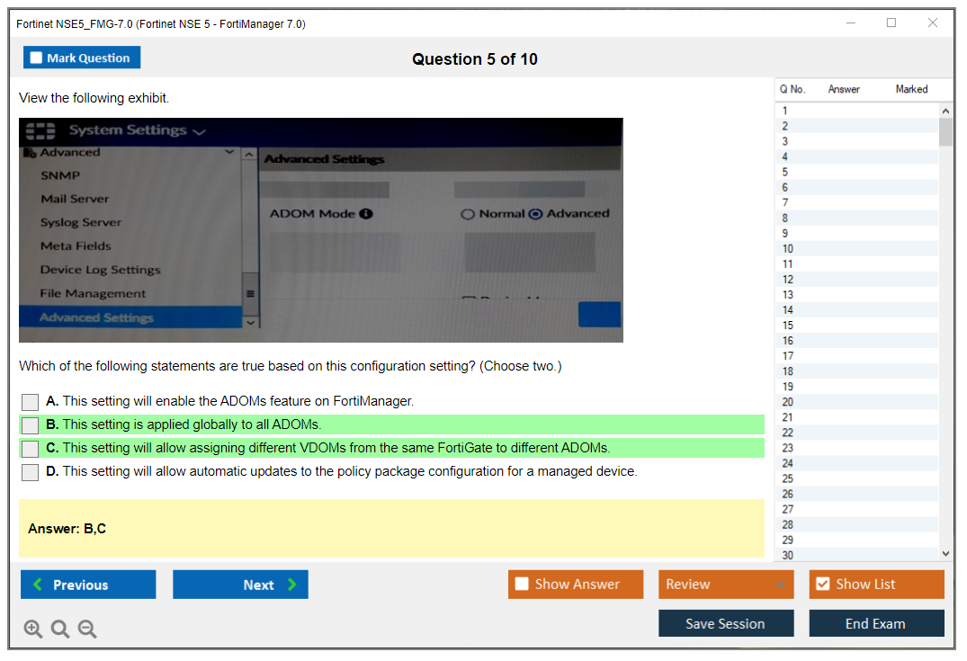 The Fortinet NSE5_FMG-7.0 exam is part of the Fortinet Network Security Expert (NSE) program, which helps professionals validate their expertise with Fortinet's security products and solutions.