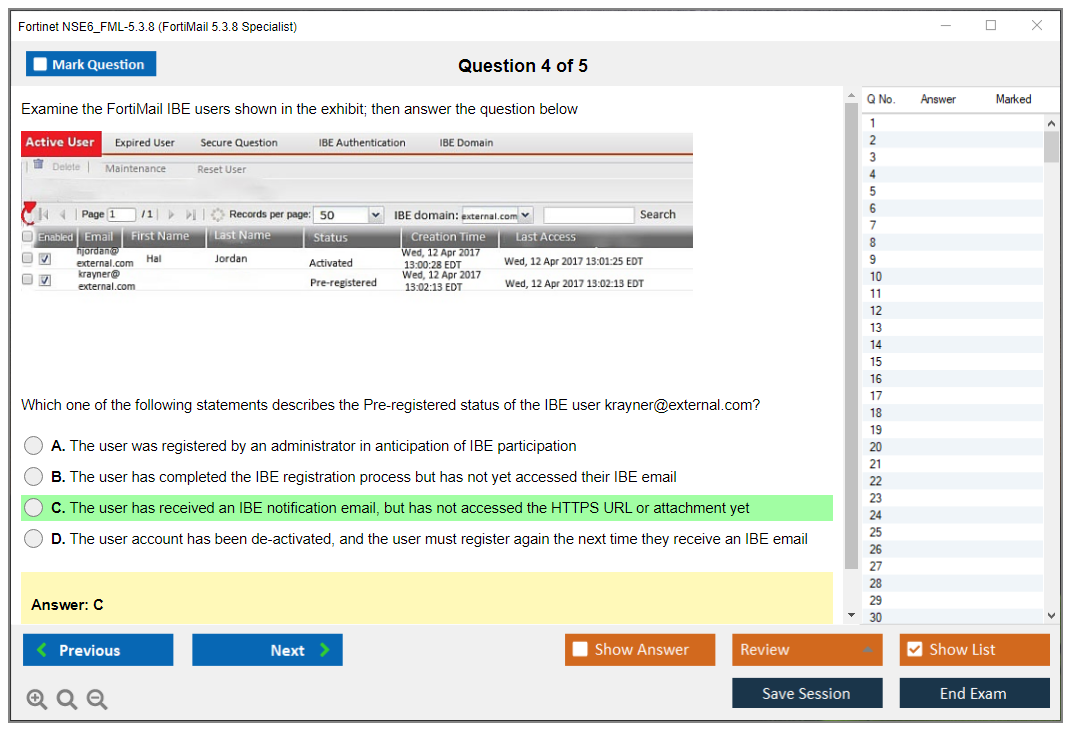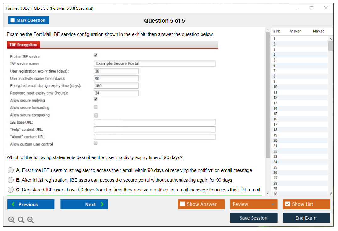The Fortinet NSE6_FML-5.3.8 (FortiMail 5.3.8 Specialist) Exam is designed to test the knowledge and skills of IT professionals in configuring, managing, and troubleshooting FortiMail systems. It is part of the Fortinet Network Security Expert (NSE) certification program.