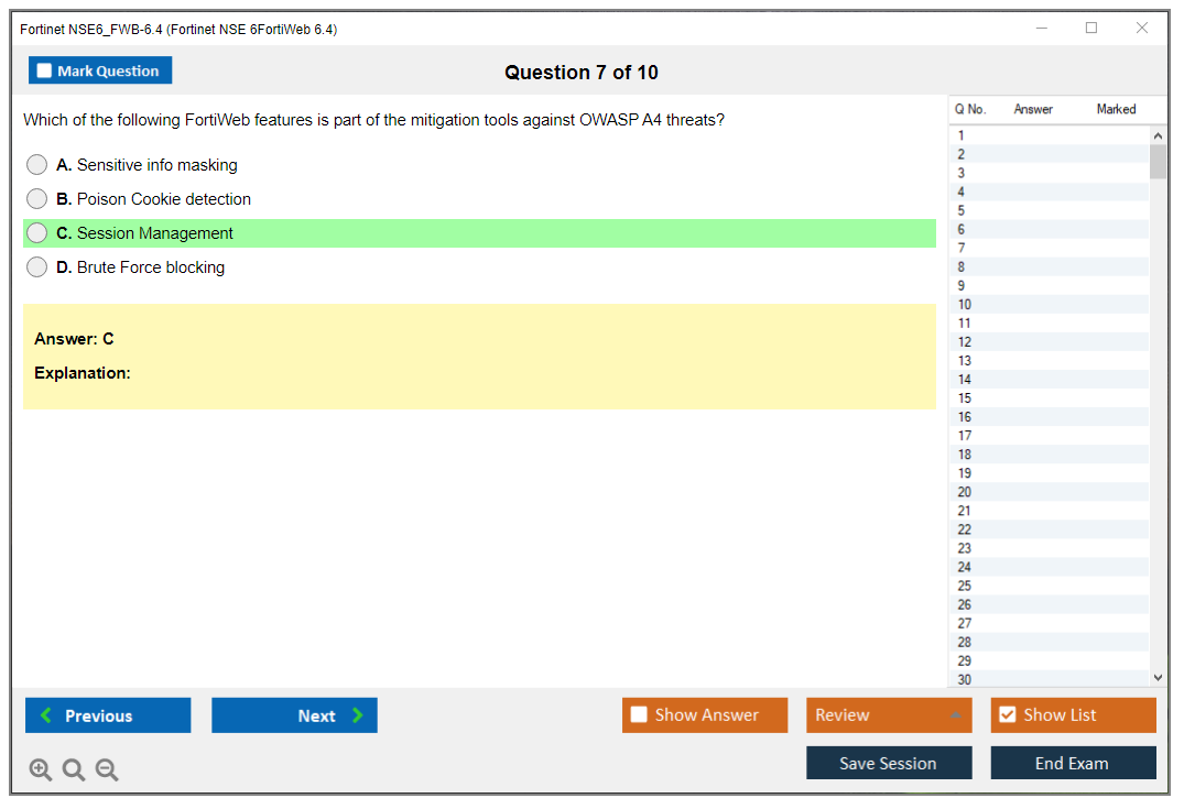 The Fortinet NSE6_FWB-6.4 exam typically consists of 30 questions.