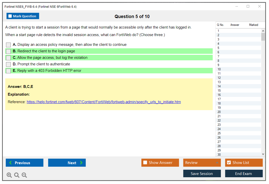 The Fortinet NSE6_FWB-6.4 (Fortinet NSE 6 - FortiWeb 6.4) exam is a certification exam that tests a candidate's knowledge and skills in deploying, configuring, and managing FortiWeb 6.4 systems. It is part of the Fortinet NSE 6 Network Security Specialist program.
