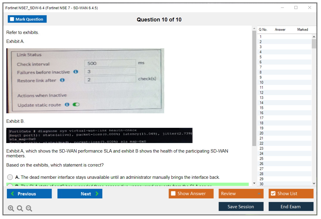 Sample questions for the Fortinet NSE7_SDW-6.4 exam can typically be found on Fortinet's official website or through authorized training partners.