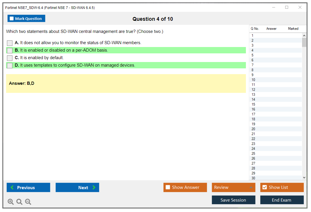 The Fortinet NSE7_SDW-6.4 (Fortinet NSE 7 - SD-WAN 6.4.5) exam is designed to test advanced knowledge and skills in deploying, managing, and troubleshooting Fortinet's SD-WAN solutions.