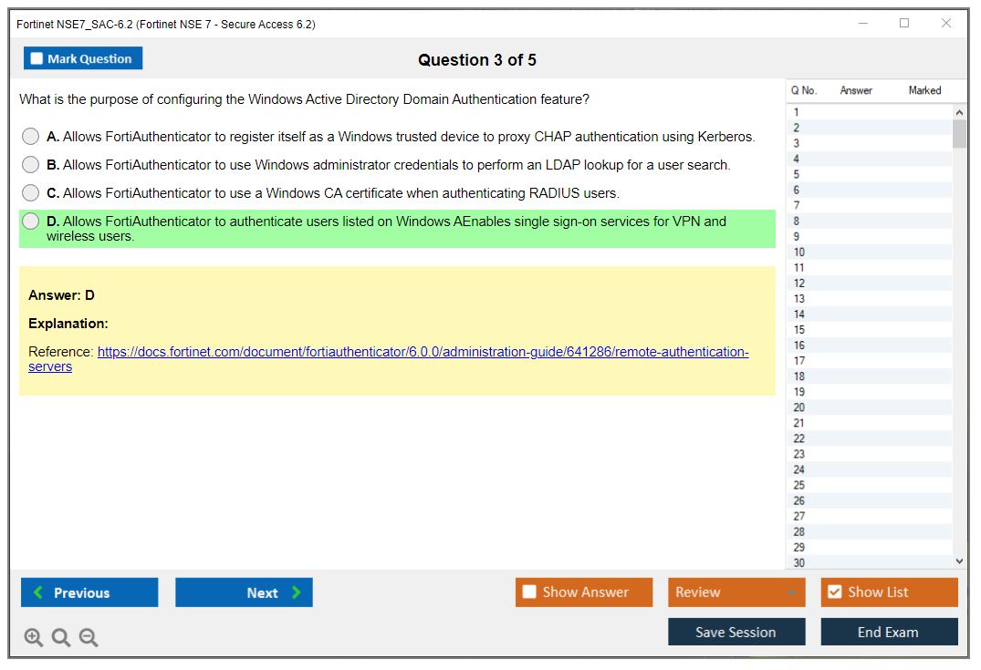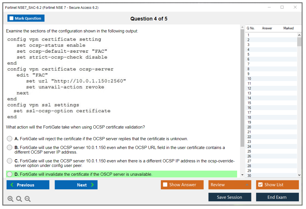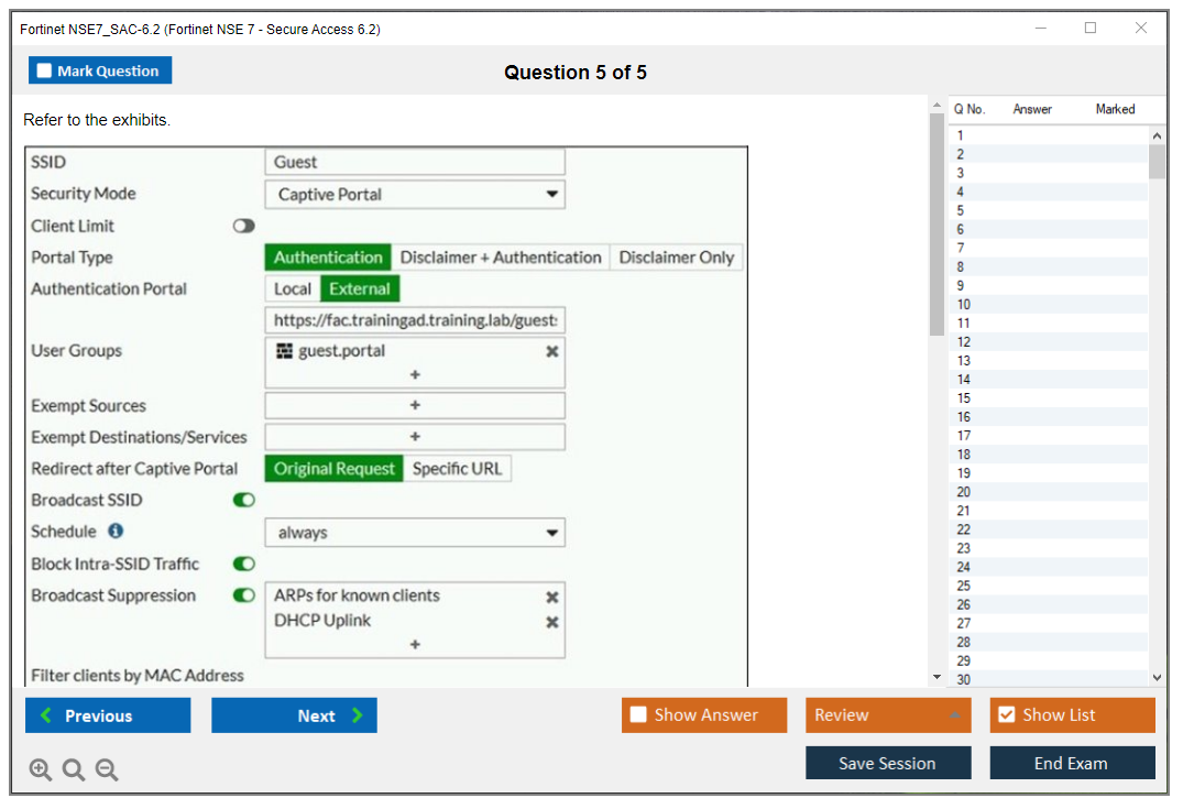 The Fortinet NSE7_SAC-6.2 (Fortinet NSE 7 - Secure Access 6.2) exam is a certification exam designed to validate the skills and knowledge of IT professionals in managing and implementing secure access solutions using Fortinet products.