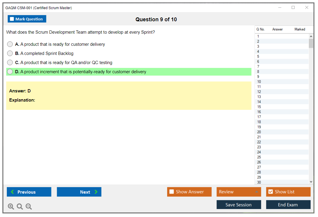 The GAQM CSM-001 (Certified Scrum Master) exam is designed to validate a candidate's knowledge and skills in Scrum methodologies and practices. It assesses the ability to understand and implement Scrum principles, facilitating teams, and ensuring successful project delivery.