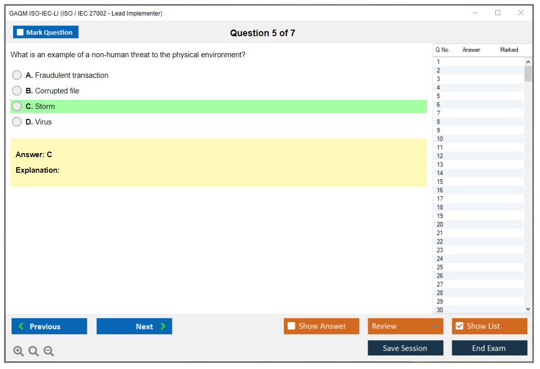 The GAQM ISO-IEC-LI (ISO / IEC 27002 - Lead Implementer) Exam is designed to validate the knowledge and skills required to implement an Information Security Management System (ISMS) based on ISO/IEC 27002. It is aimed at professionals who are responsible for the implementation and management of information security controls.