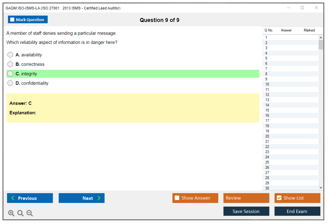 What is the Question Format of GAQM ISO-ISMS-LA Exam?