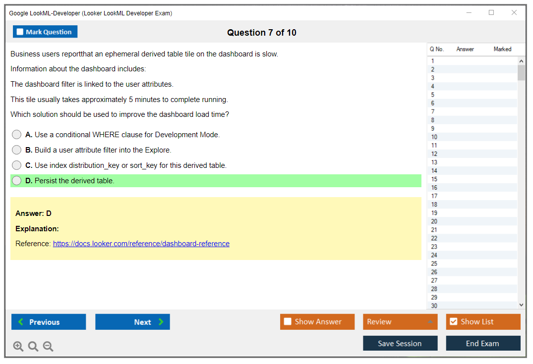 Sample questions for the Google LookML-Developer Exam can be found on the official Google Cloud certification website or through Looker community forums and study guides.