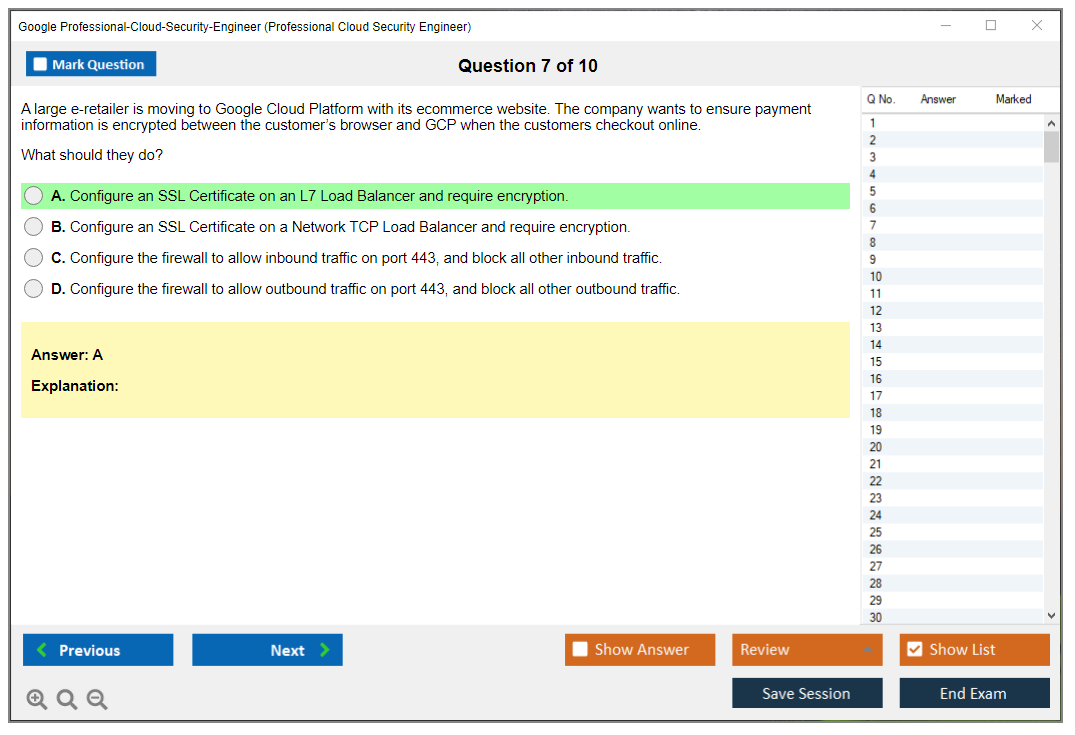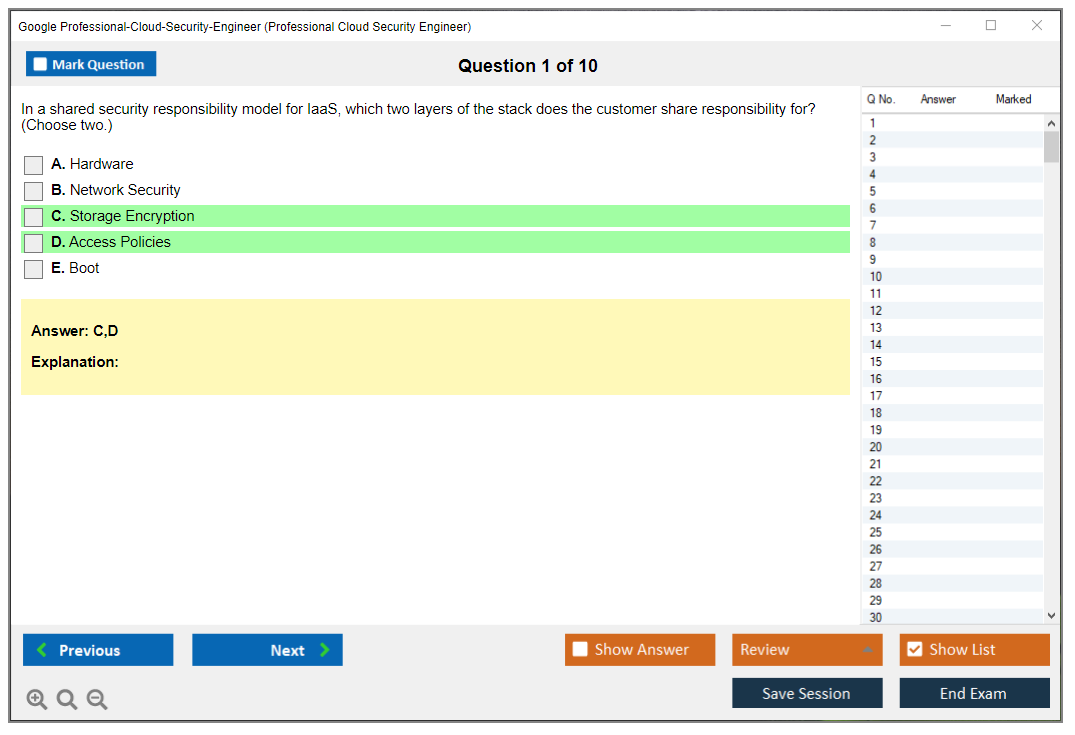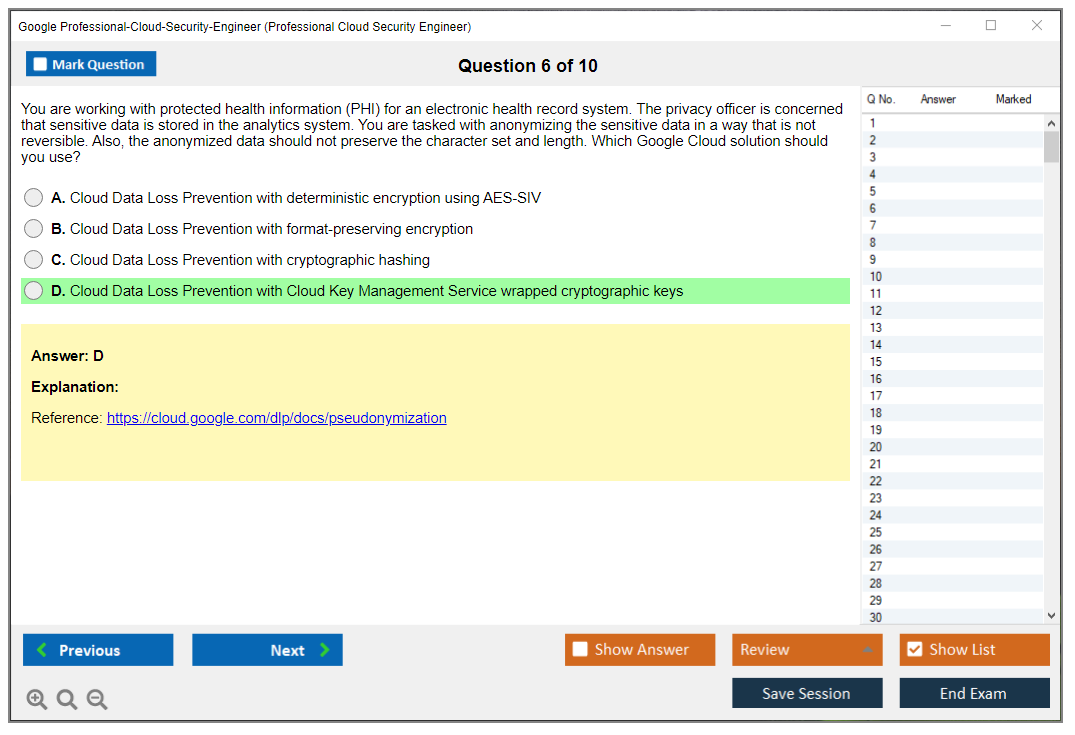 DumpsBoss offered a user-friendly platform for my Professional Cloud Security Engineer exam prep. The interface was intuitive, and the practice exams were easy to navigate. I also appreciated the ability to track my progress and identify my strengths and weaknesses. DumpsBoss made studying for a tough exam much less stressful. Thanks!