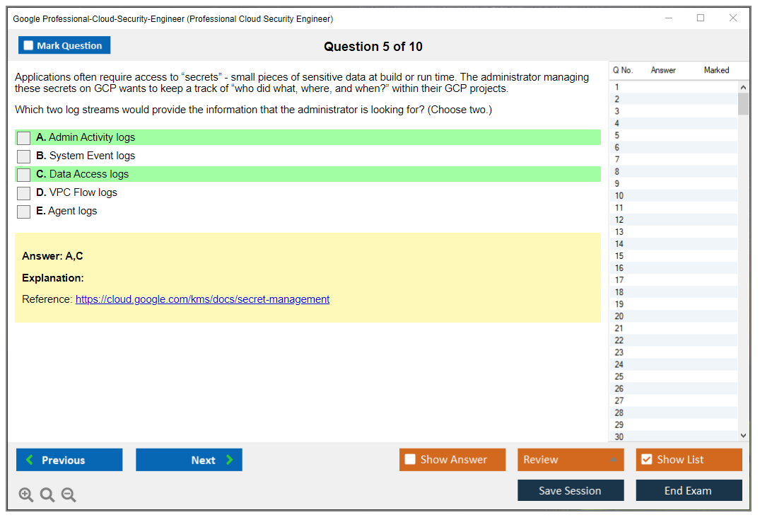 Muito obrigado à DumpsBoss por seu excelente material de estudo do exame Google Cloud Certified - Professional Cloud Security Engineer. É claro, conciso e altamente eficaz.