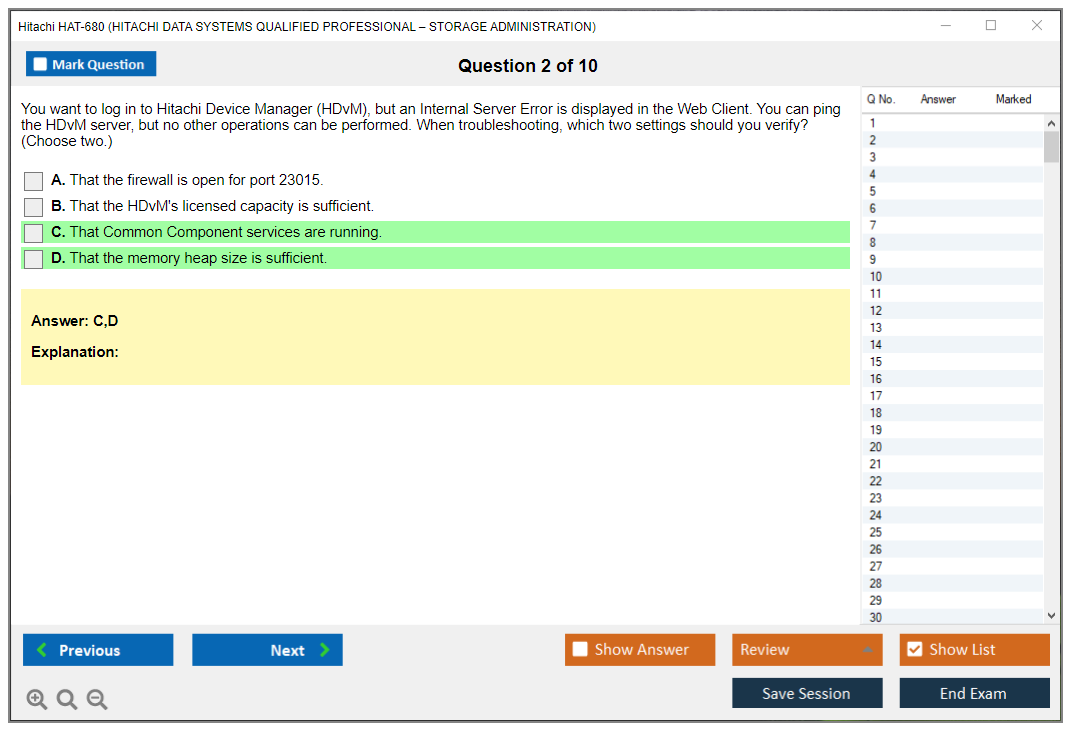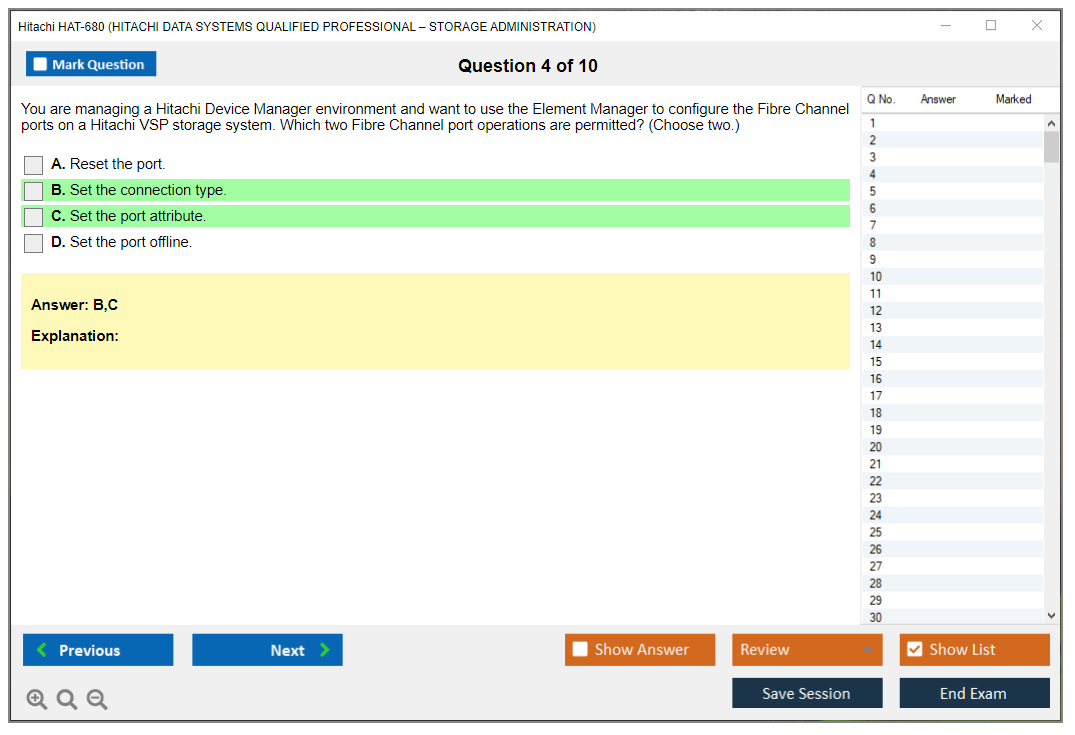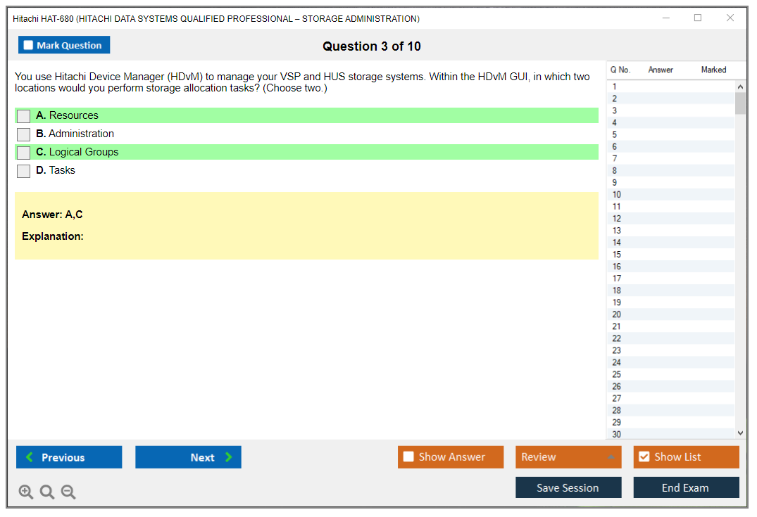 The Hitachi HAT-680 (Hitachi Data Systems Qualified Professional – Storage Administration) exam is designed to validate the skills and knowledge of professionals in managing and administering Hitachi storage solutions. It covers various aspects of storage management including configuration, performance tuning, and troubleshooting.