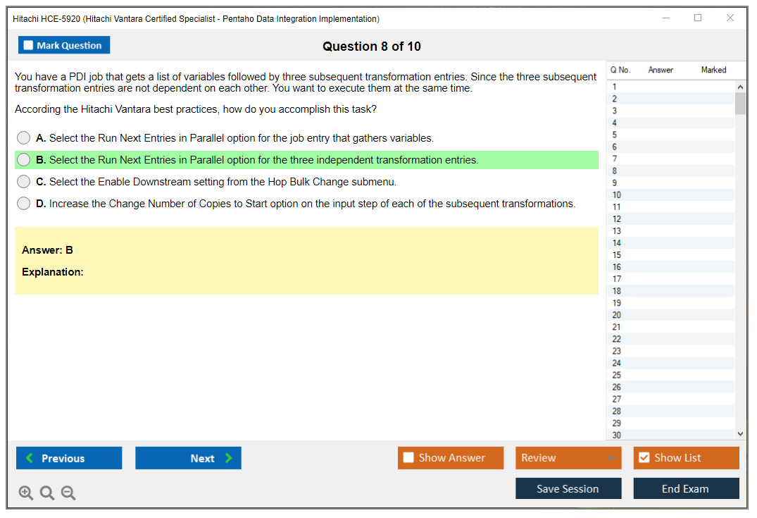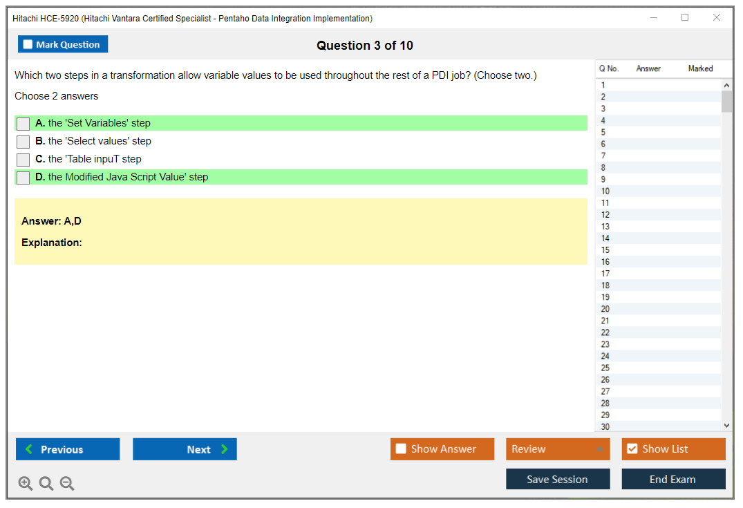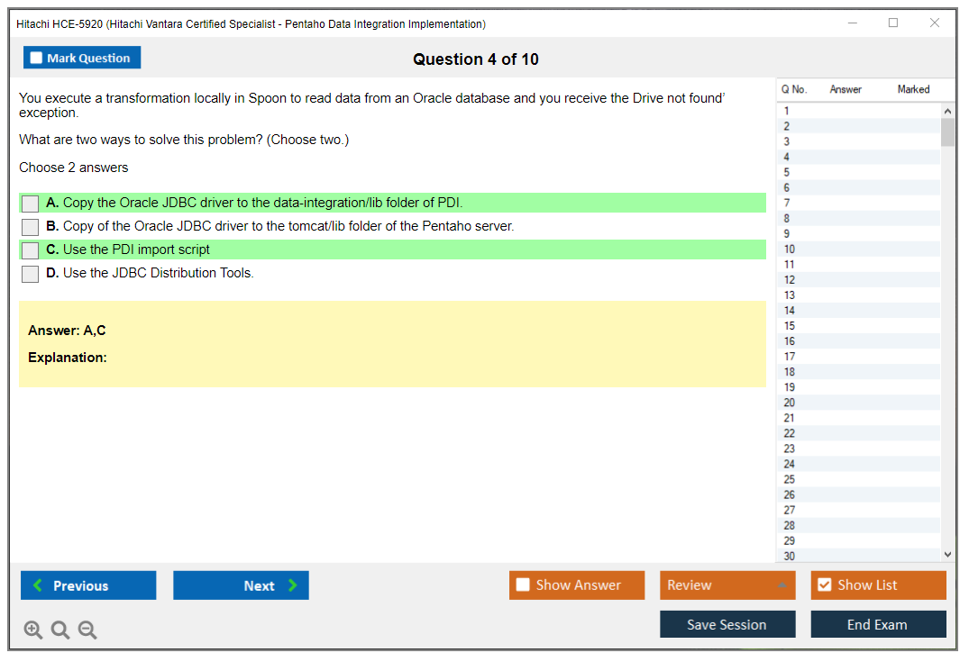 The Hitachi HCE-5920 exam is designed for individuals aiming to become certified specialists in Pentaho Data Integration (PDI) implementation. This certification validates the candidate's skills and knowledge in implementing, configuring, and managing PDI solutions.