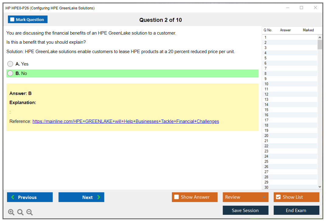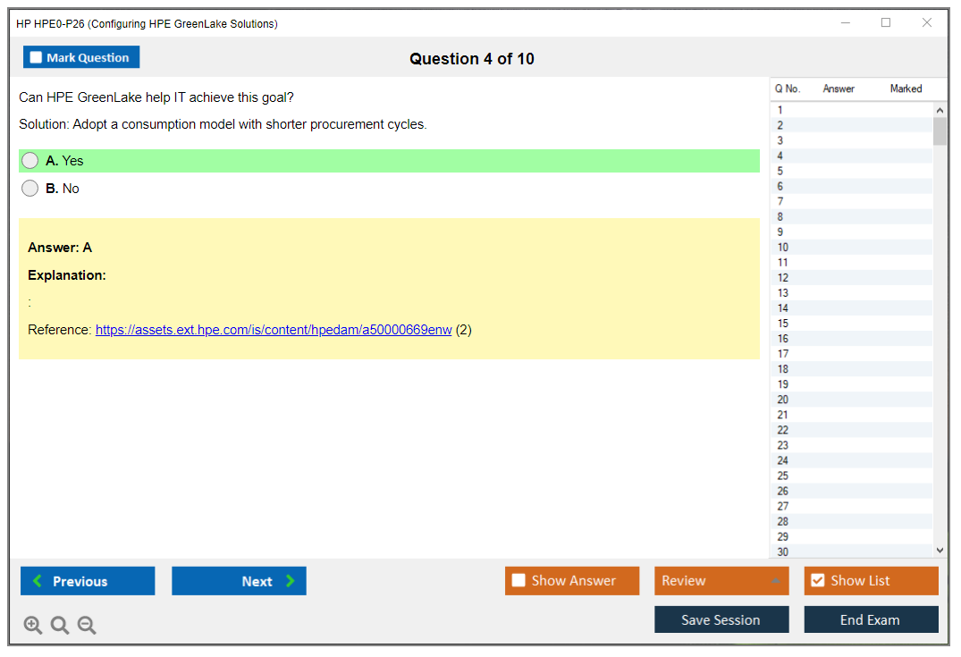 The HP HPE0-P26 (Configuring HPE GreenLake Solutions) Exam is designed to validate the knowledge and skills necessary to configure HPE GreenLake solutions. It assesses a candidate's ability to understand and implement HPE GreenLake services, which are a suite of cloud services delivered by Hewlett Packard Enterprise.
