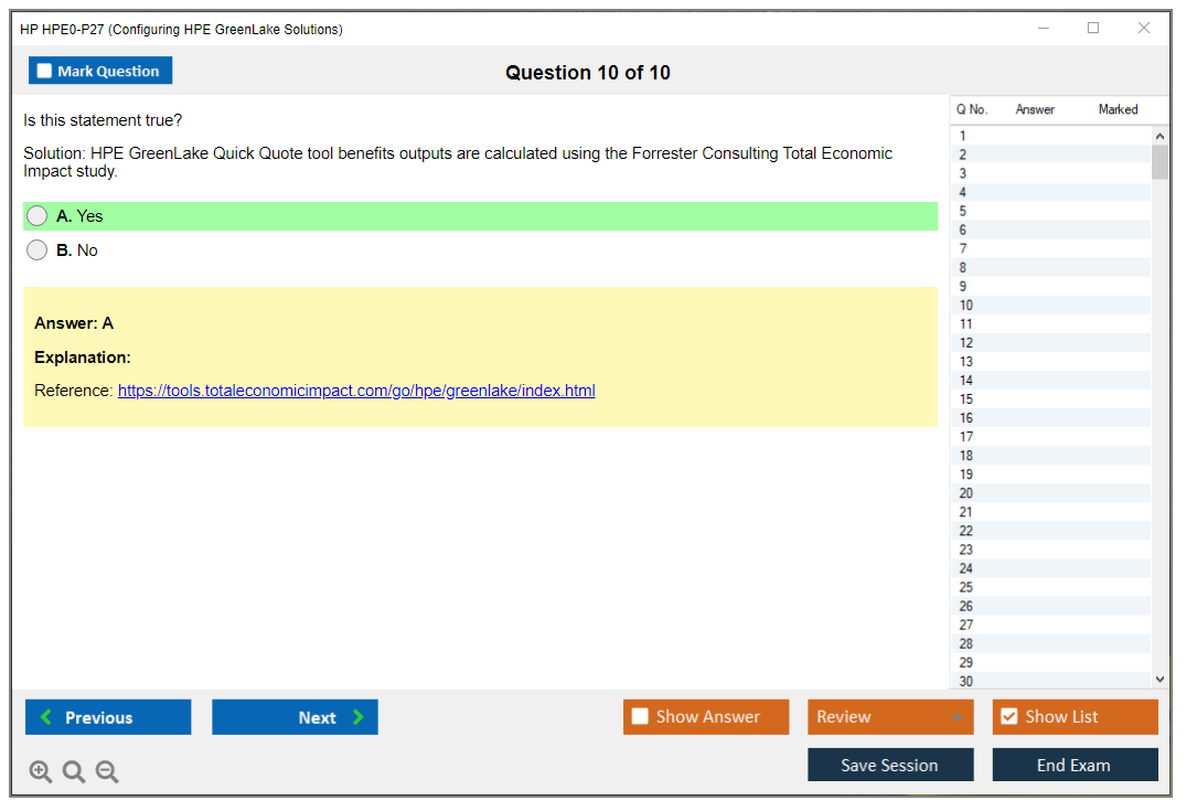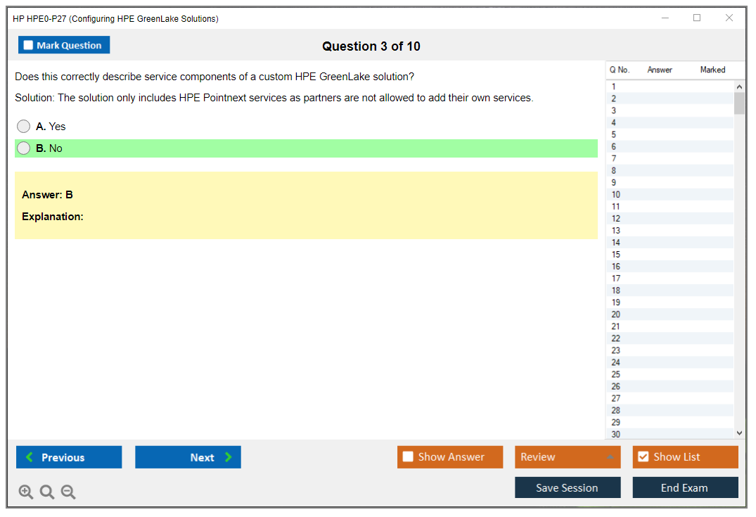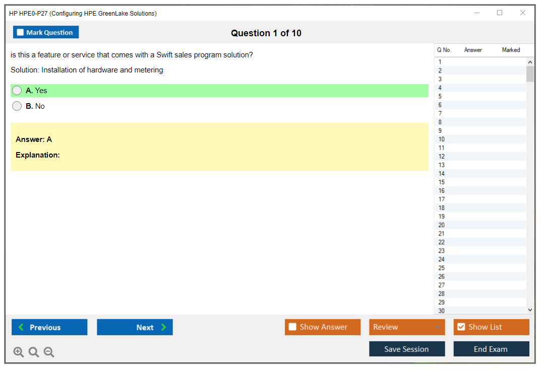 The HP HPE0-P27 (Configuring HPE GreenLake Solutions) exam tests candidates on their ability to configure and manage HPE GreenLake solutions, which are designed to provide a flexible, pay-per-use IT consumption model.