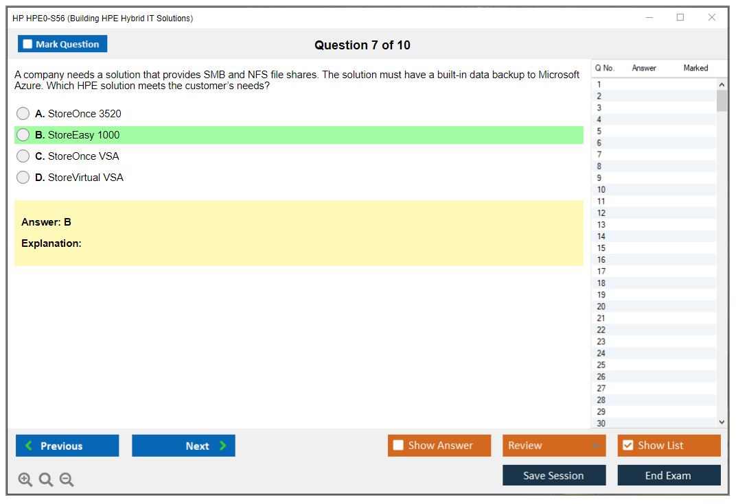 The HP HPE0-S56 (Building HPE Hybrid IT Solutions) Exam is designed to validate the knowledge and skills necessary to architect, implement, and manage HPE Hybrid IT solutions. It focuses on HPE products, solutions, and technologies, as well as the ability to integrate these into customer environments.