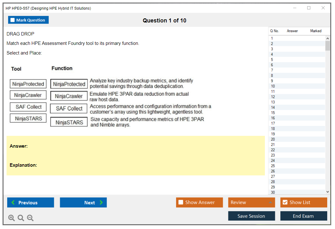 The question format of the HP HPE0-S57 exam includes multiple-choice questions, drag-and-drop, and scenario-based questions.