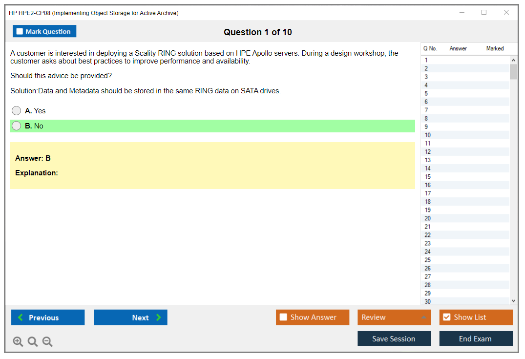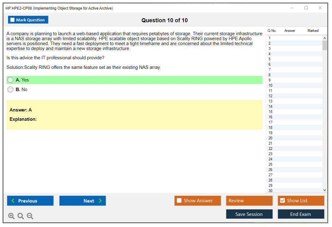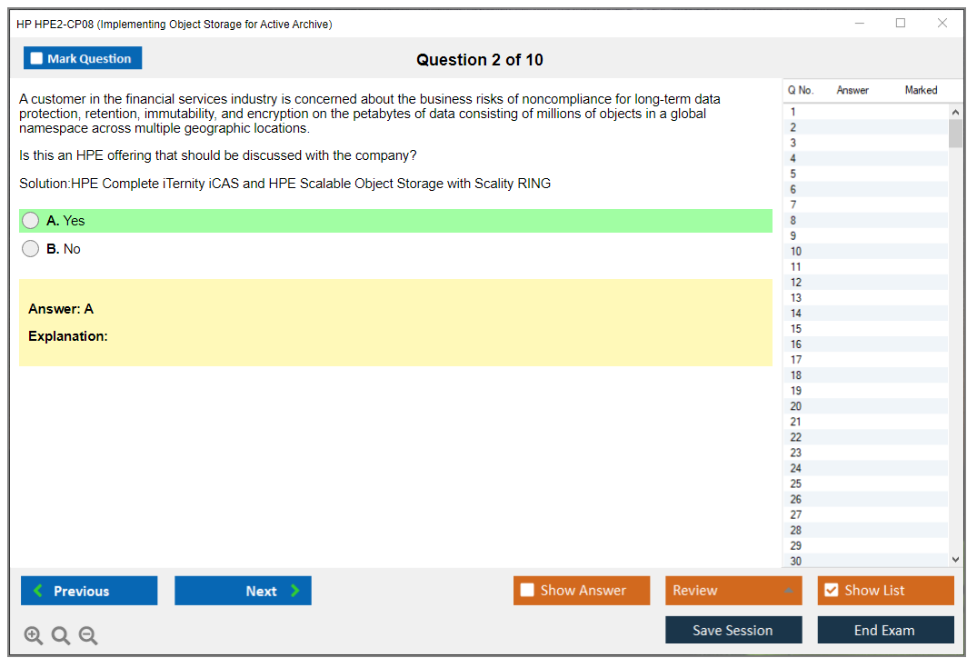 The HP HPE2-CP08 (Implementing Object Storage for Active Archive) Exam is designed to validate the knowledge and skills of IT professionals in implementing and managing object storage solutions for active archiving. The exam focuses on various aspects of object storage technology, including architecture, deployment, and management.