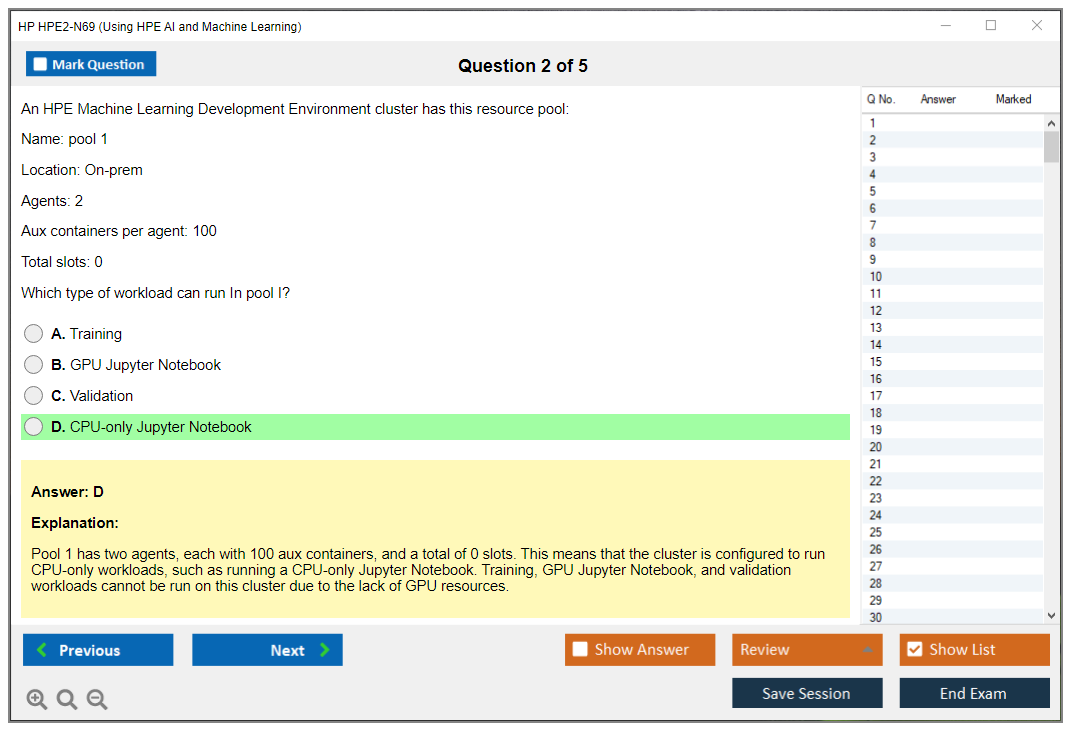 The HP HPE2-N69 Exam focuses on assessing candidates' proficiency in utilizing HPE's AI and machine learning tools. It is intended for IT professionals who are involved in implementing, managing, and supporting AI and machine learning solutions within their organizations.