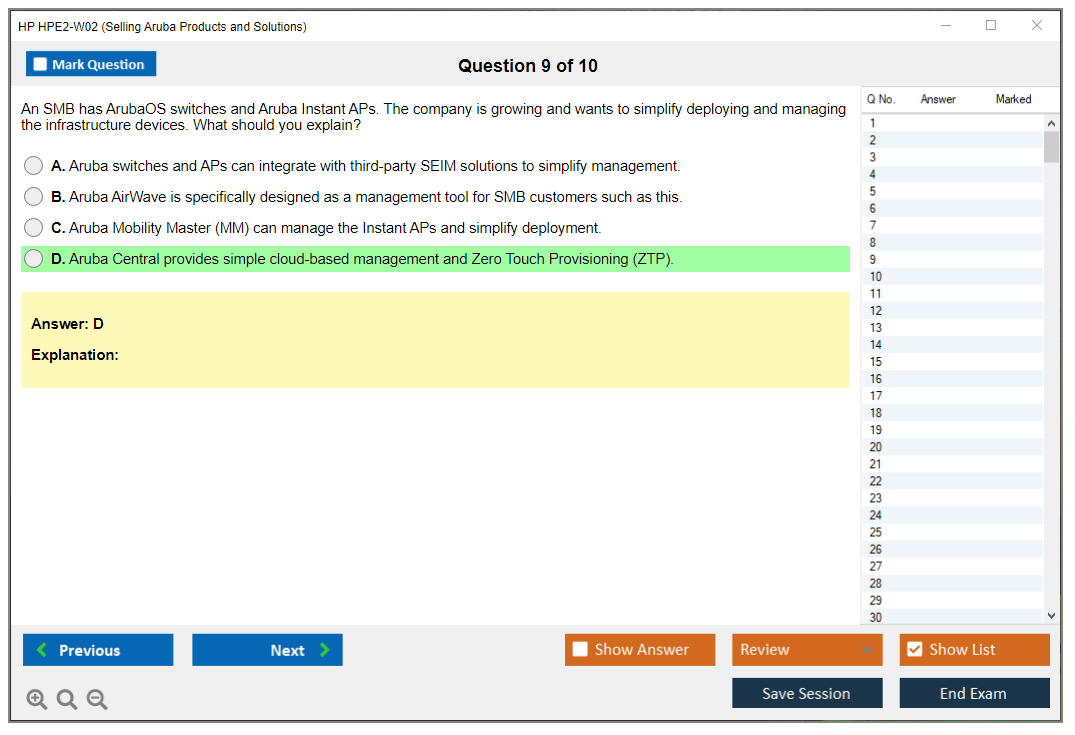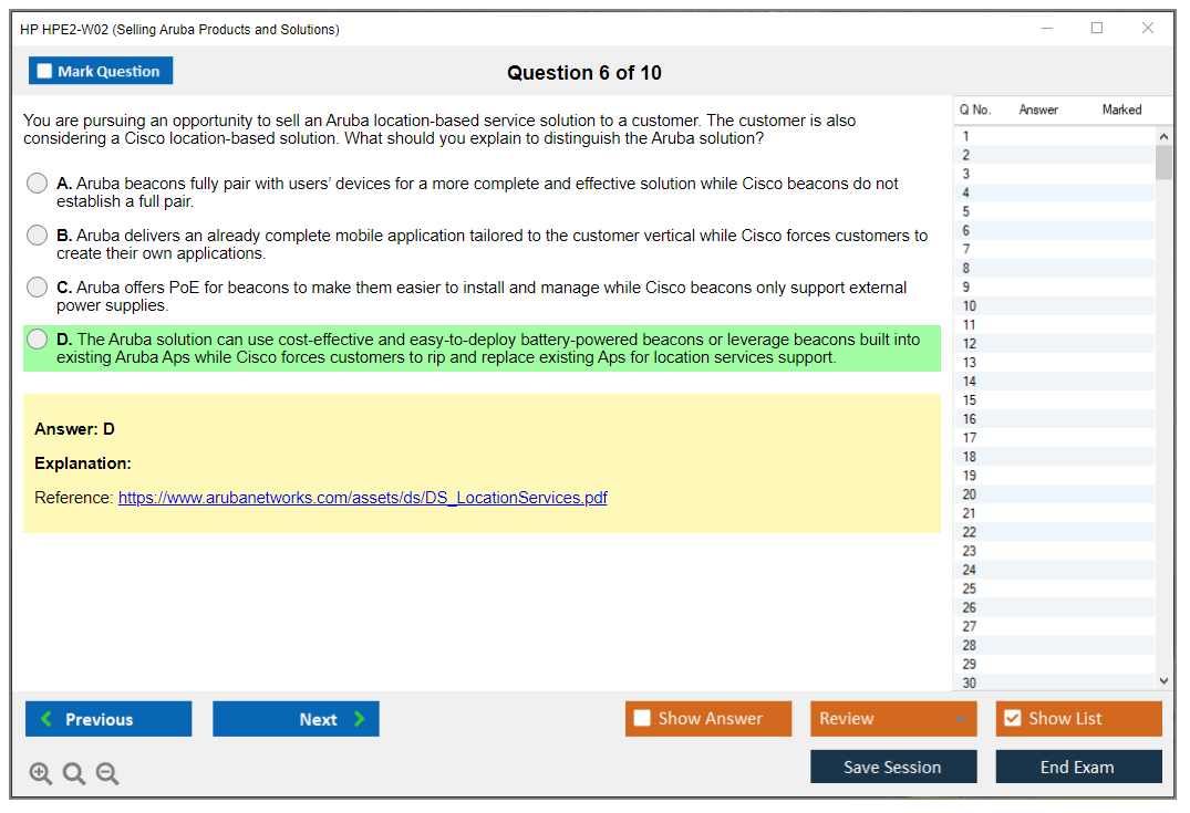 The HP HPE2-W02 exam, also known as Selling Aruba Products and Solutions, is designed to validate the knowledge and skills of sales professionals in selling Aruba products and solutions.