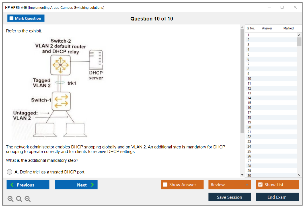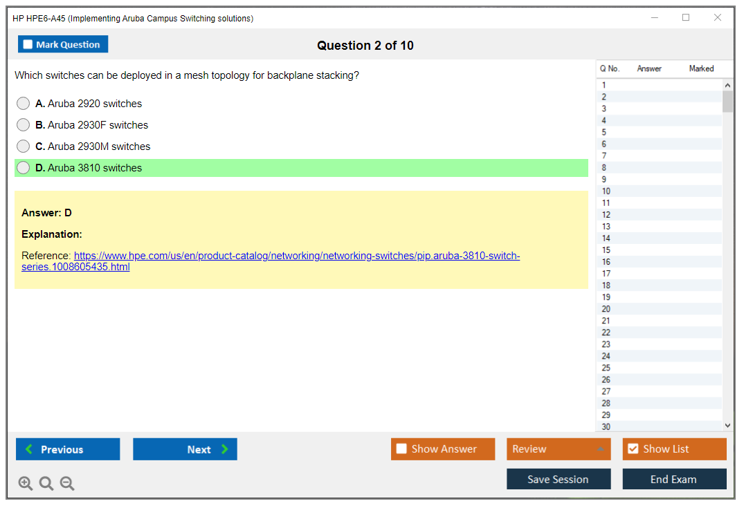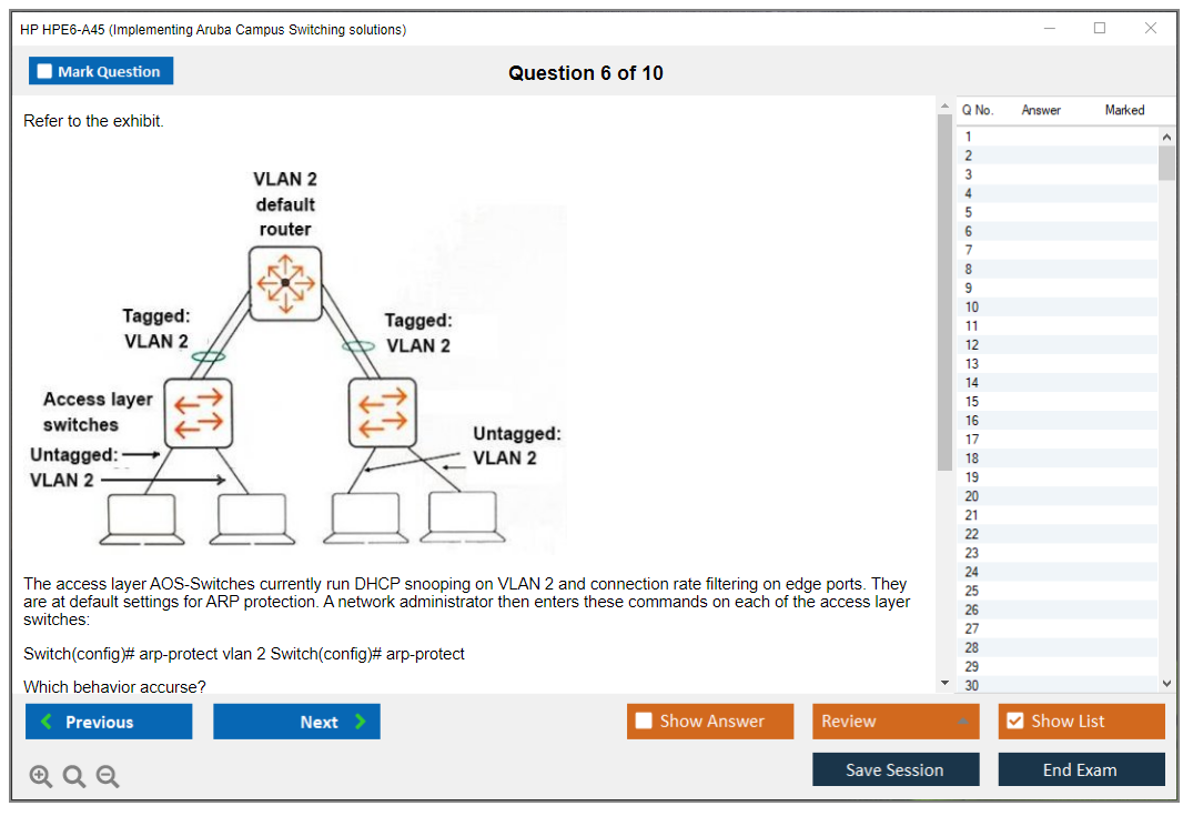 The HP HPE6-A45 exam, also known as Implementing Aruba Campus Switching solutions, is designed to validate the skills and knowledge required to implement and configure modern Aruba campus switching solutions. It focuses on areas such as VLANs, secure access, redundancy technologies, dynamic routing, and network management.