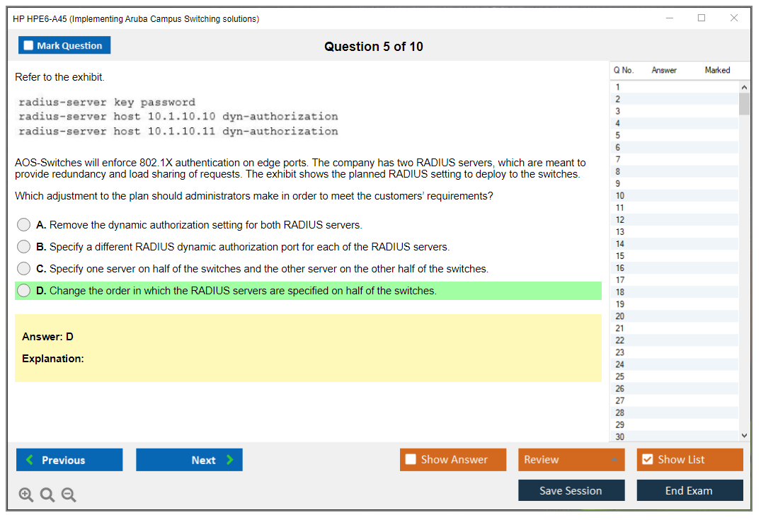 What are the Sample Questions of HP HPE6-A45 Exam?